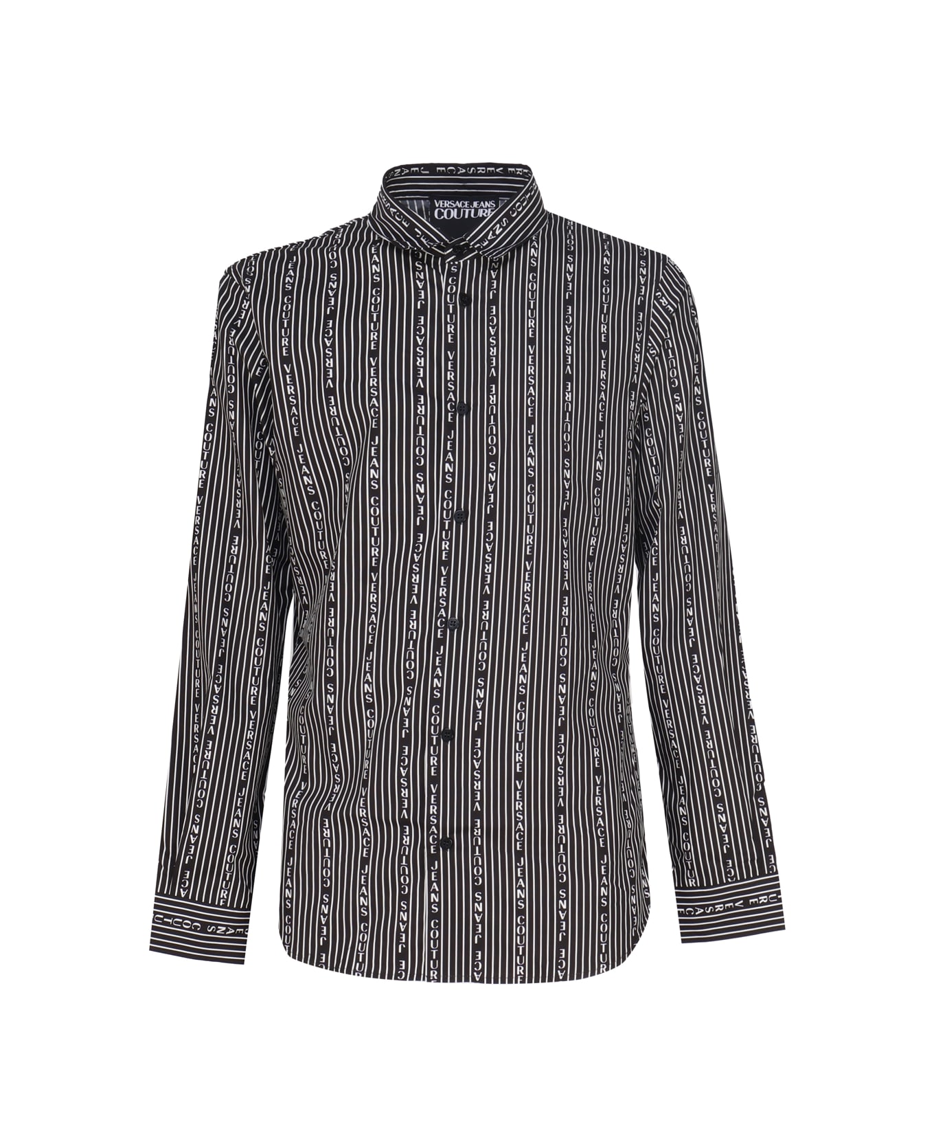 Black Classic Shirt With Pointed Collar In Cotton from Versace Jeans Couture -Black shirt with all-over striped logo -Pointed collar -Button closure -Colour: Grey, black -100% Cotton