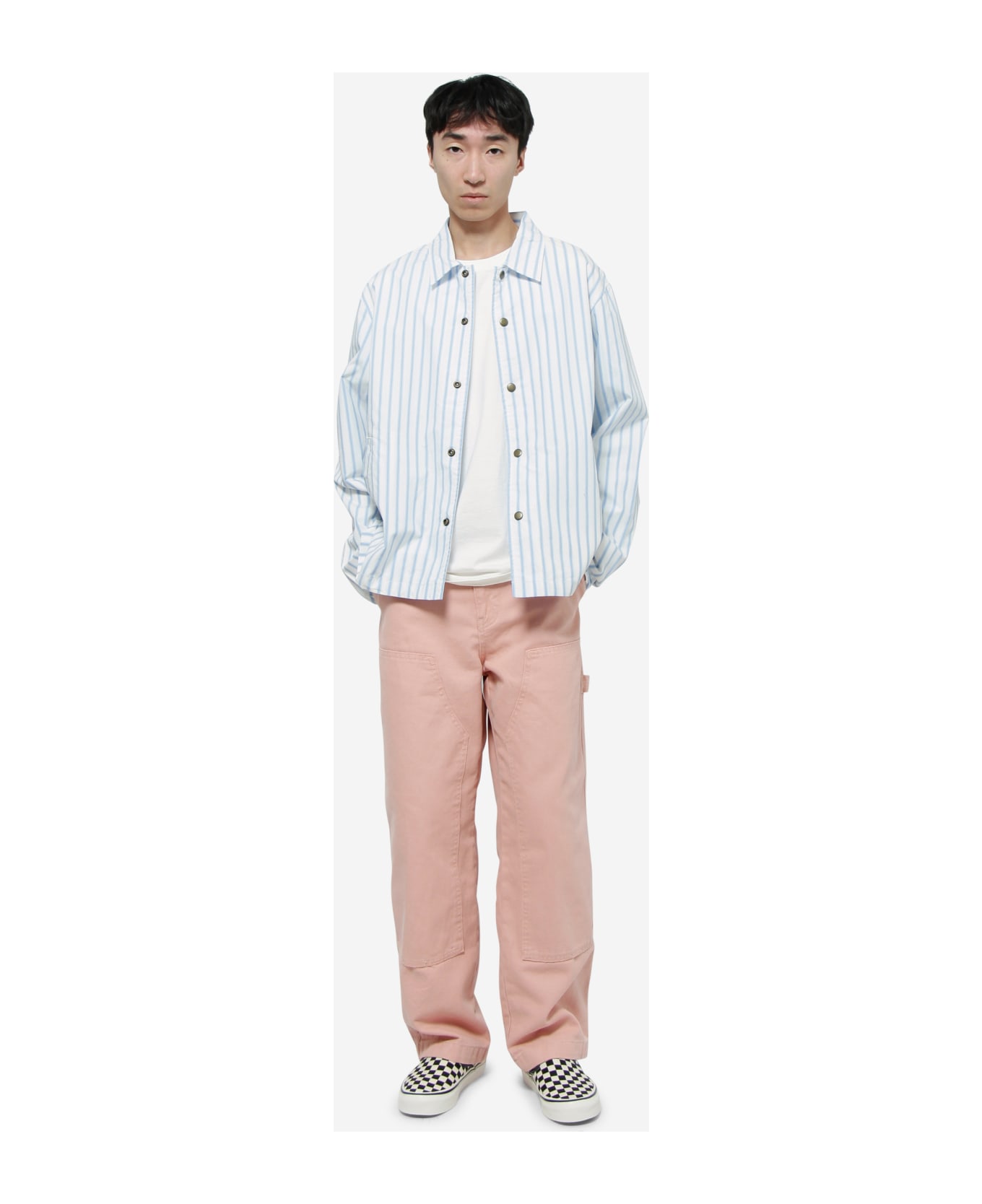COACH Shirt in Cyan cotton, long sleeves, classic collar, straight hem, front buttoning, automatic buttons, logo on the back, striped pattern
