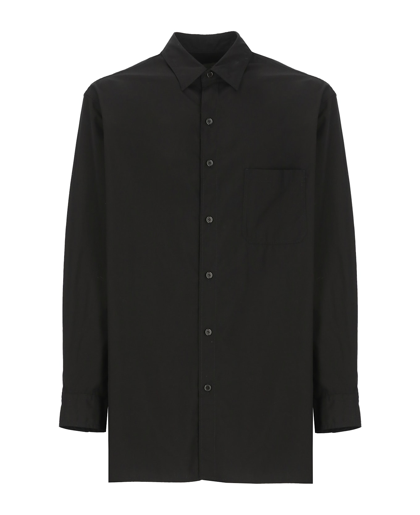 - Black Yohji Yamamoto Pour Home cotton shirt for man - Crew neck - Long sleeves - One chest pocket - Front buttons fastening - Two side vents at hem