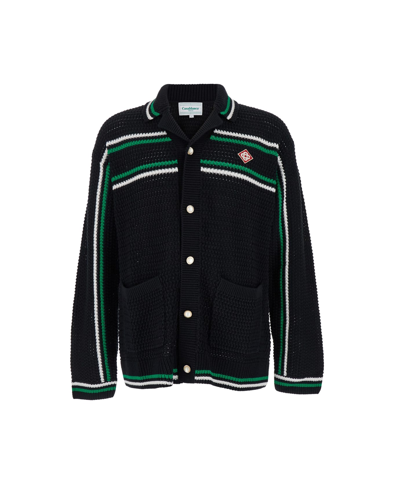 Black Long Sleeve Shirt With Logo Patch In Crochet Man