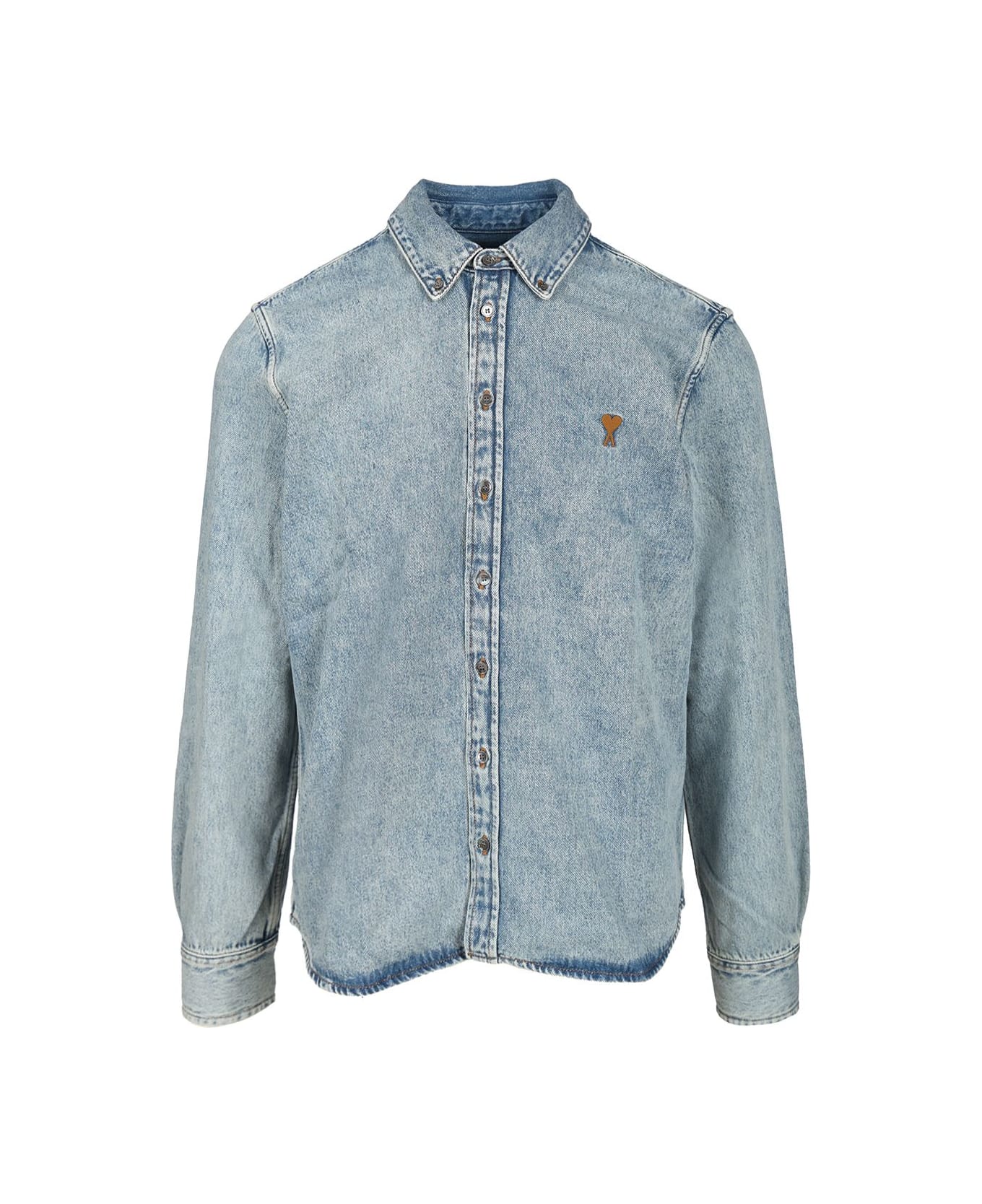 Ami denim shirt, with Ami De Coeur logo embroidered on the chest Composition: MAT PRINCIPALE:100% COTON BOUTON 1:100% NACRE(TROCHUS NILOTICUS)