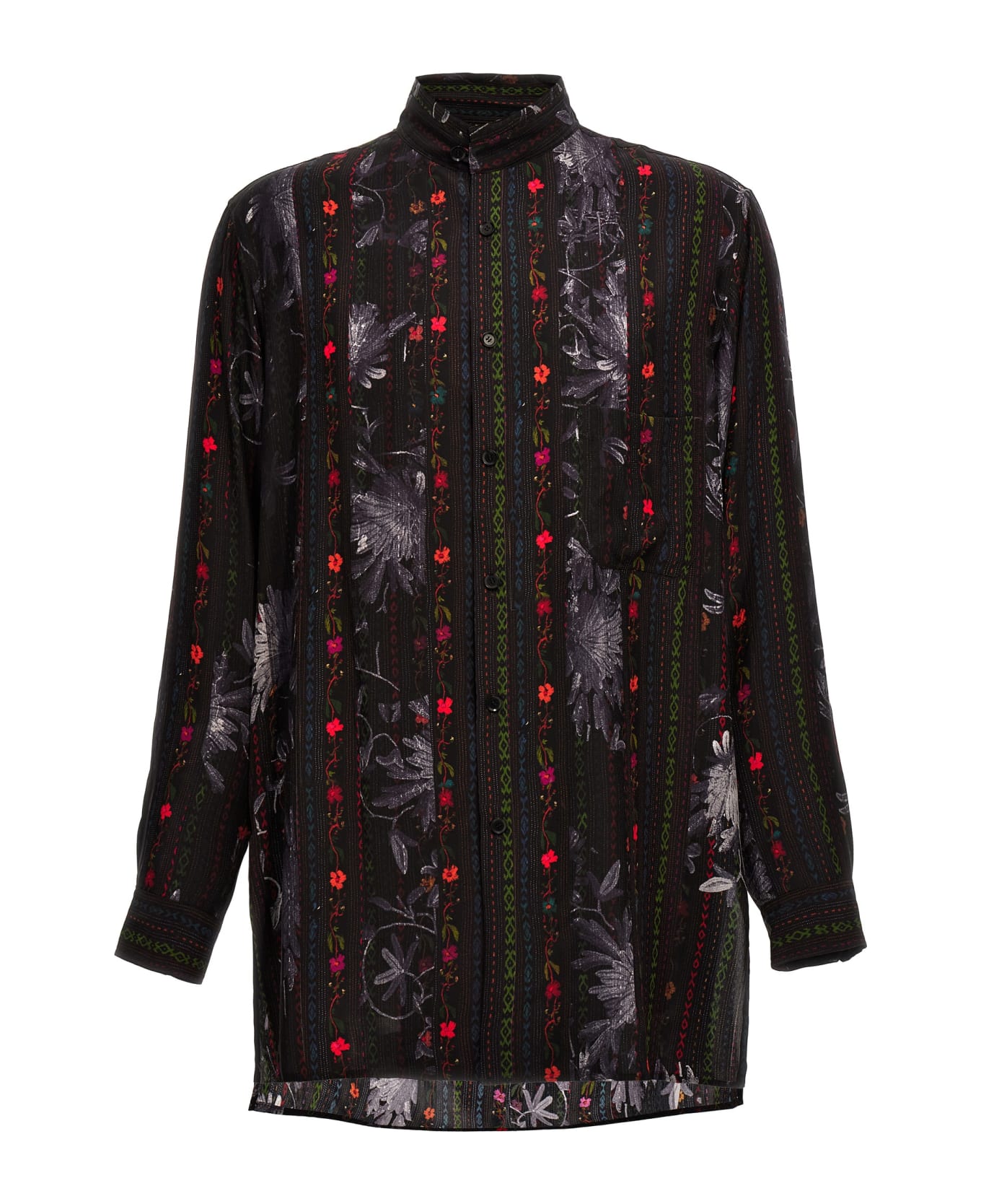'Ethnic 6 stand b' silk shirt with all-over print, button closure.