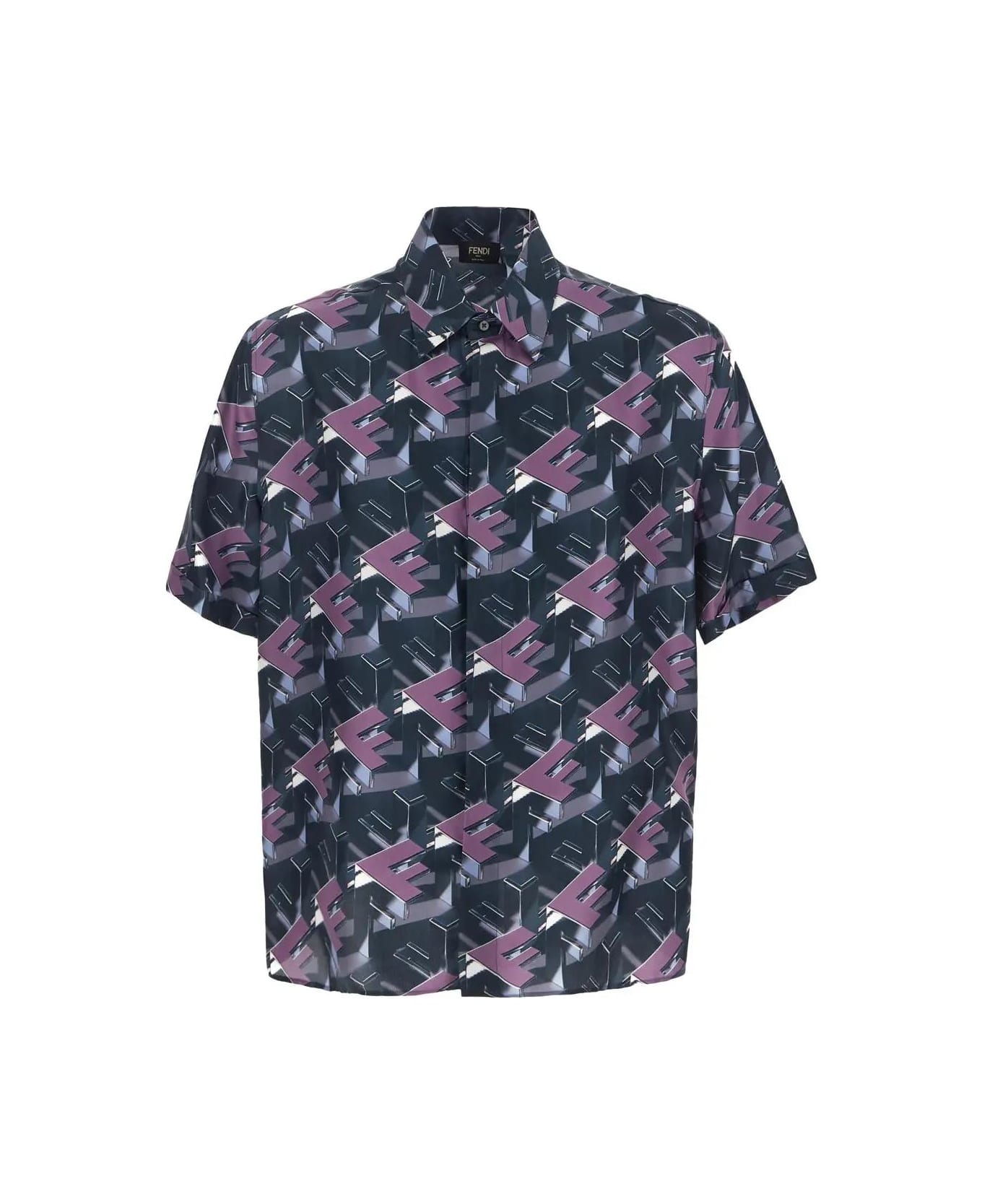 Fendi shirt in blue/purple silk with FF blocks print motif, short sleeves, concealed button closure, classic collar and relaxed fit. Composition: 100% Silk