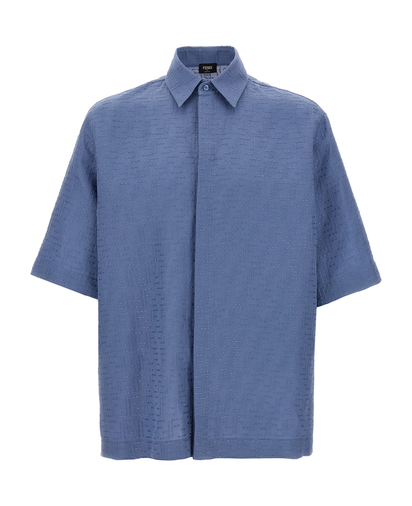 FF linen Jacquard shirt with concealed front button closure, short sleeves with dropped shoulders, side slits. Composition: 83% linen, 17% cotton