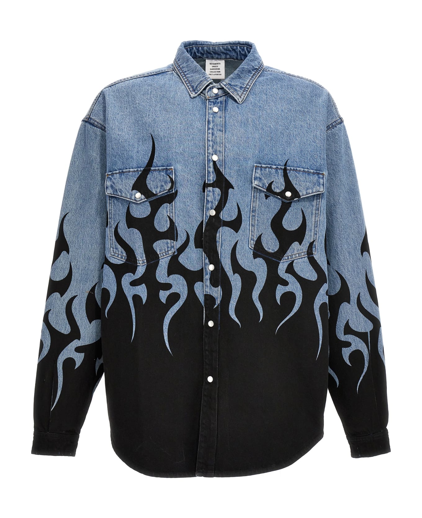Cotton denim shirt with contrasting Flame print, button closure, front pockets, and long cuffed sleeves. Composition: 100% cotton