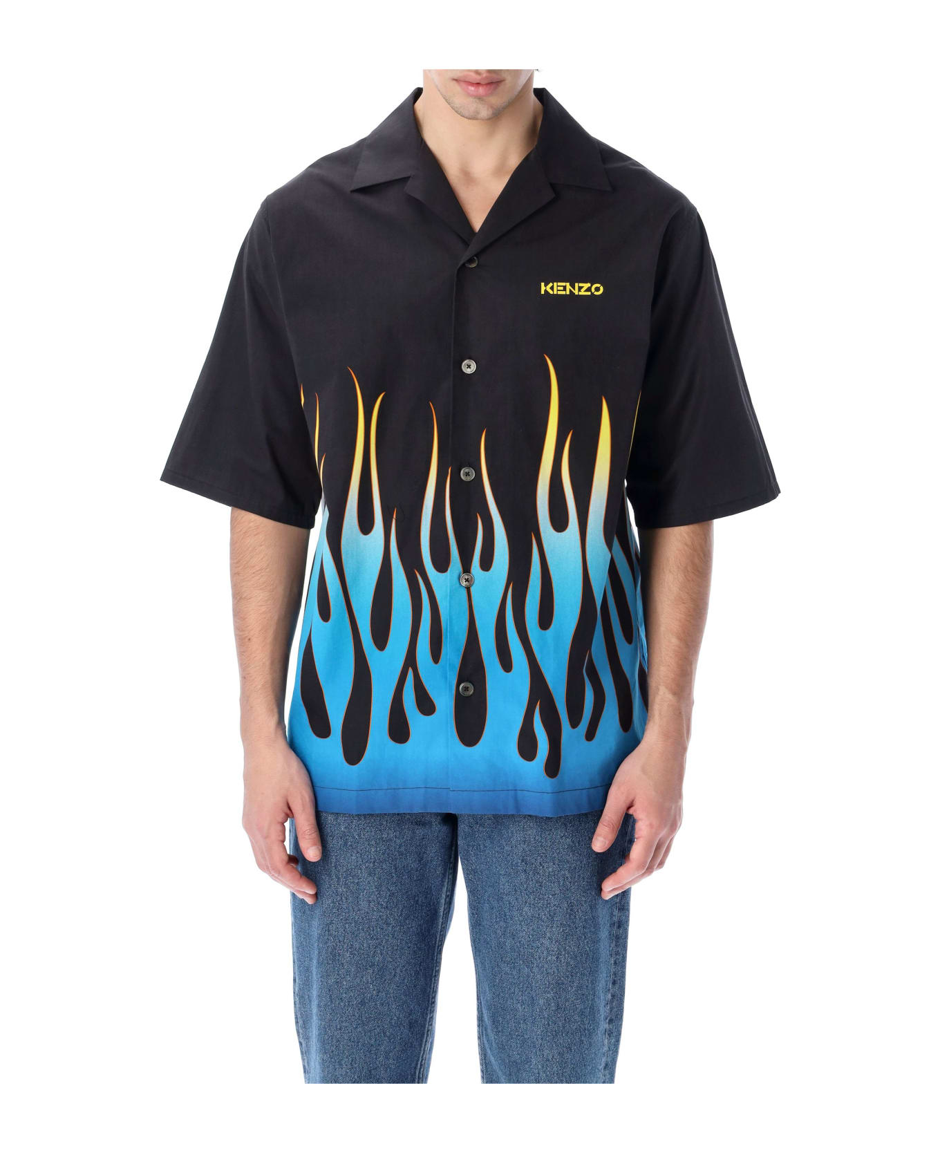 Cotton Flames Bowling Shirt By Kenzo. Featuring: - Classic Bowling Shirt Collar - Front Buttons Fastening - Logo Print At Chest - Short Sleeves - Straight Hem