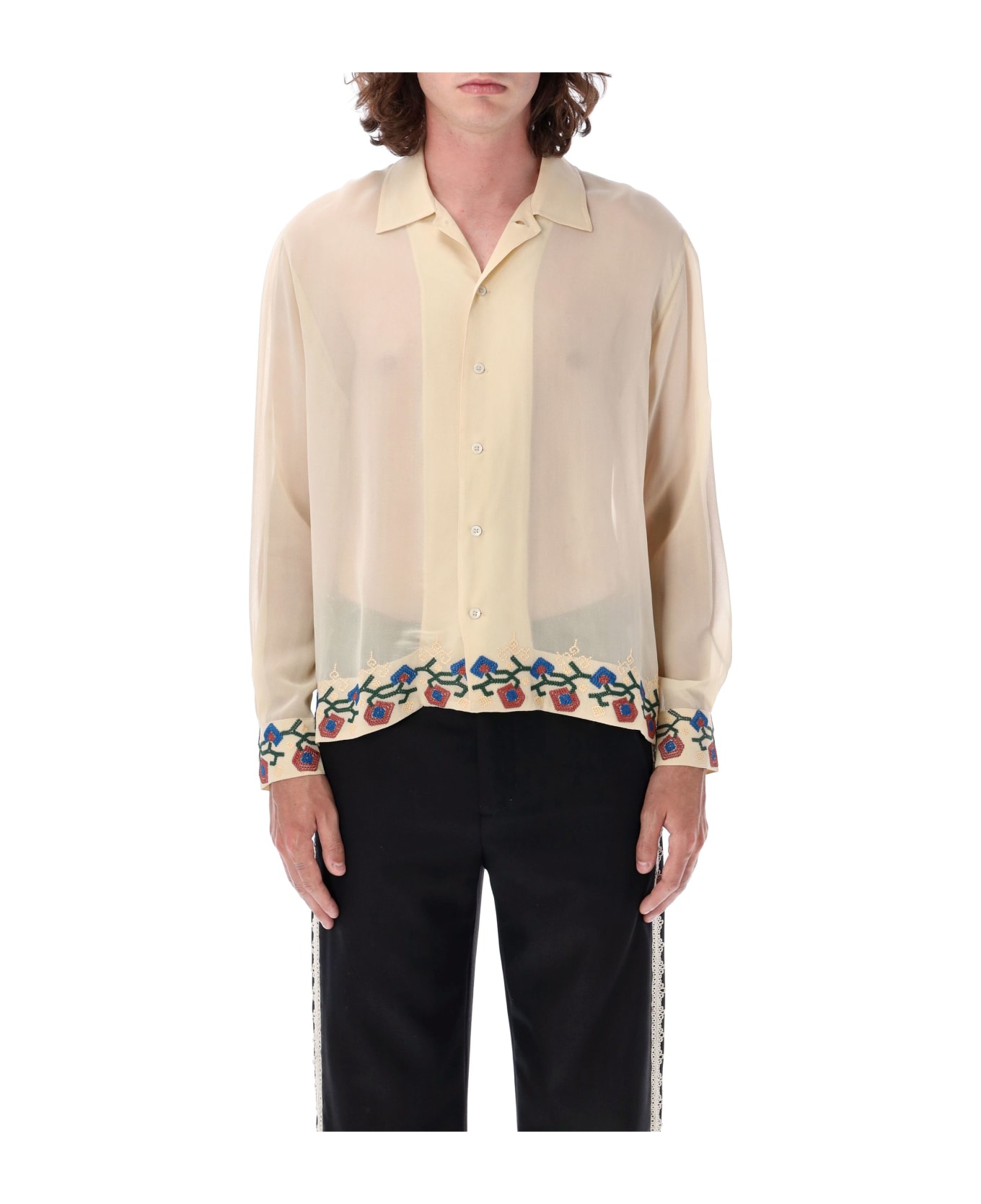 Flowering Liana Ls Shirt By Bode. Featuring: Viscose Shirt Boxy Fit Front Buttoning Floral Embroidery Model Is 1,90m And Wears Size L.