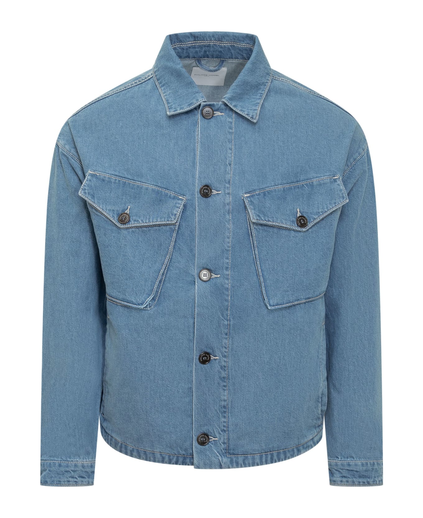 Denim jacket. Classic collar. Button closure. Button cuffs. Four pockets.