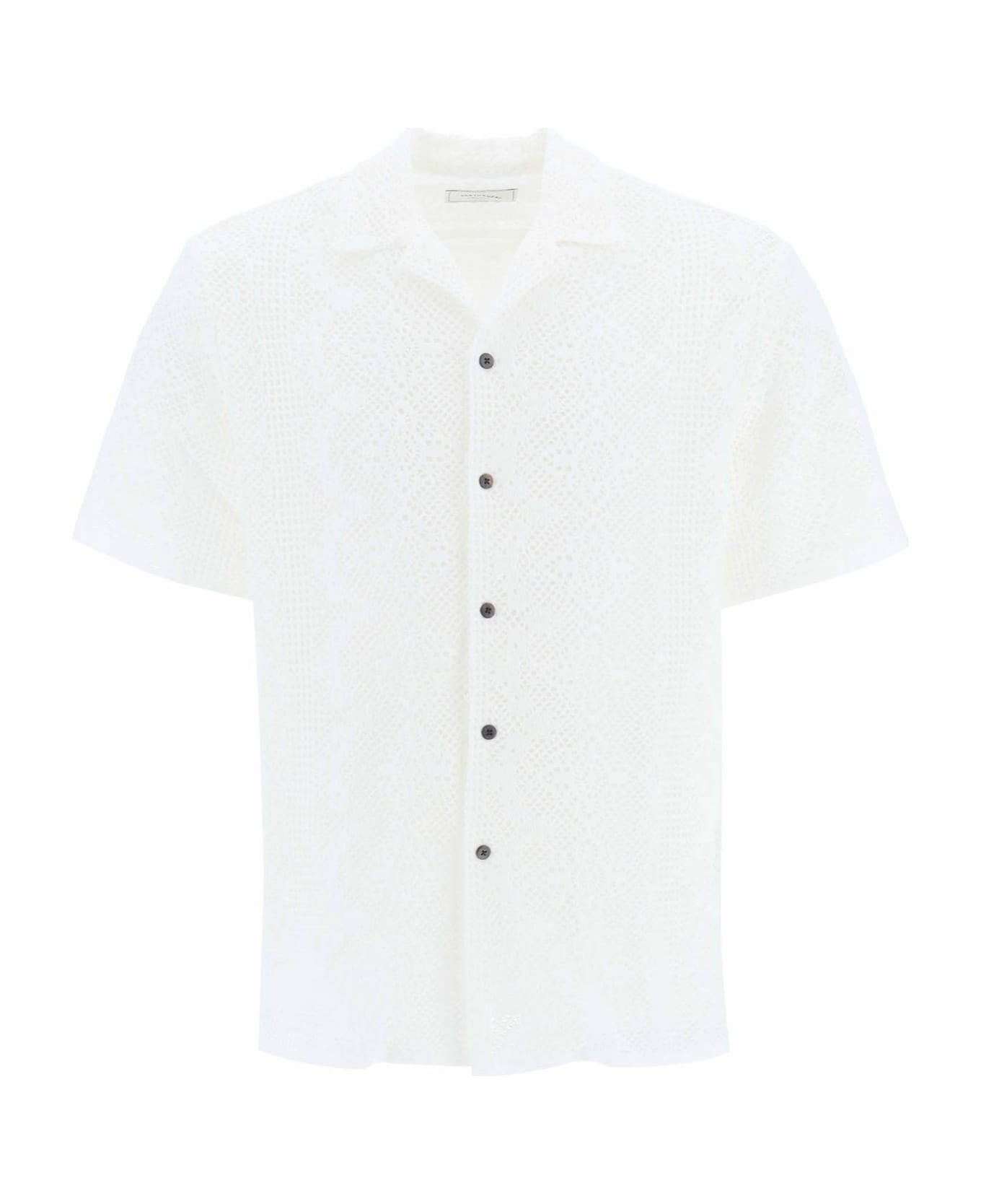 Portuguese Flannel shirt crafted in cotton blend crochet. It features open collar, front button fastening, low-set short sleeves and lined interior. Relaxed fit. The model is 187 cm tall and wears size L.