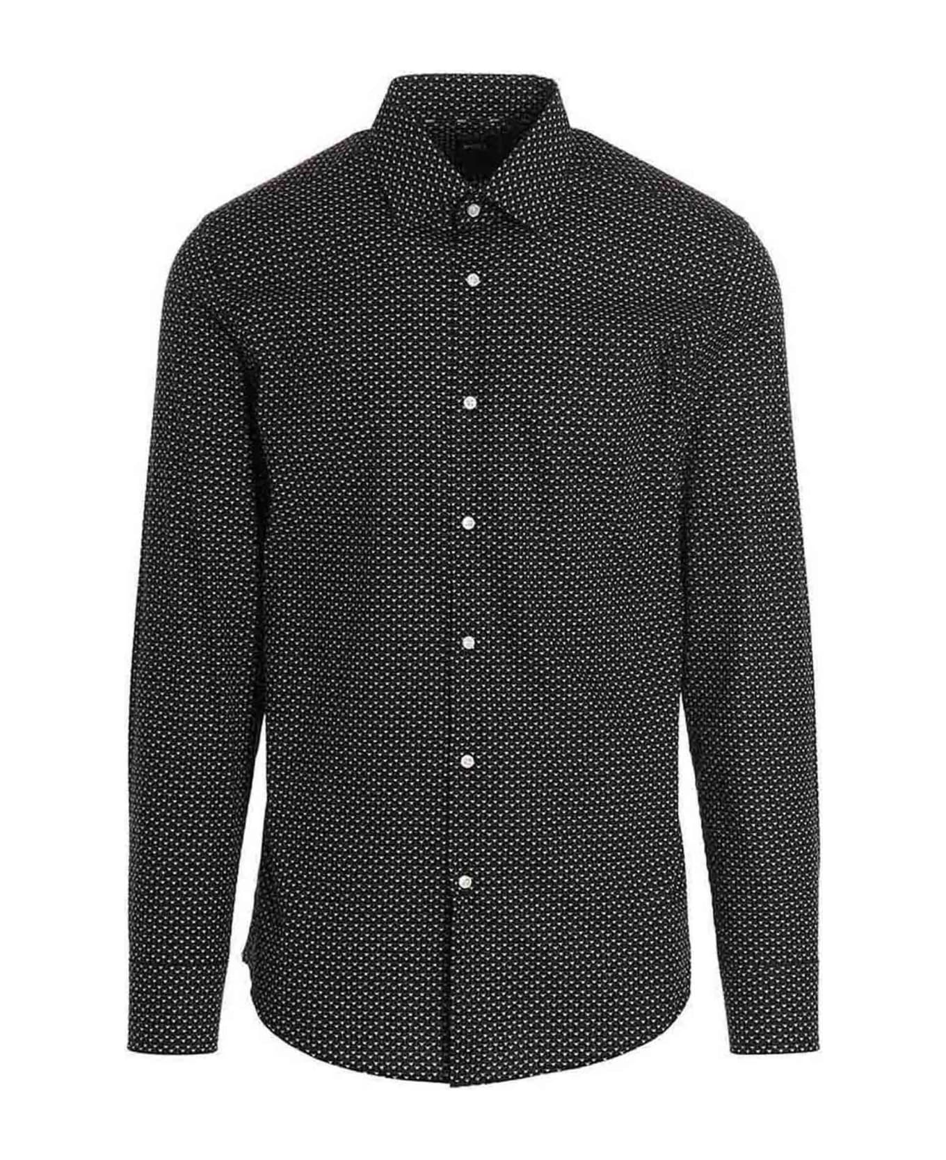 Hank' stretch cotton shirt with all over print, a button closure, and long cuffed sleeves.