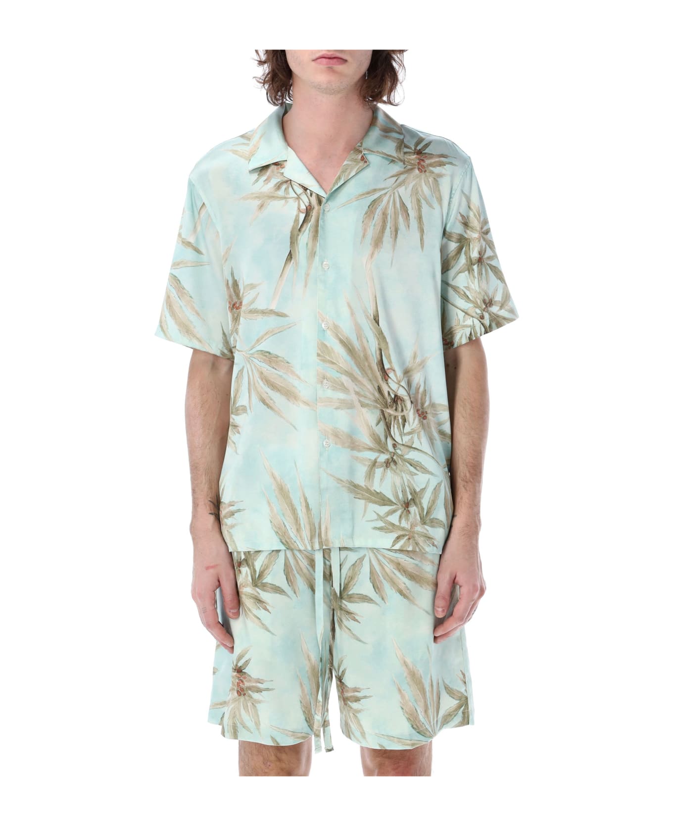 Hemp Leaves Silk S/s Shirt By Nahmias. Featuring: Bowling Shirt Collar Front Button Fastening Short Sleeves Printed Straight Hem Model Is 1,90 M Tall And He Is Wearing Size L