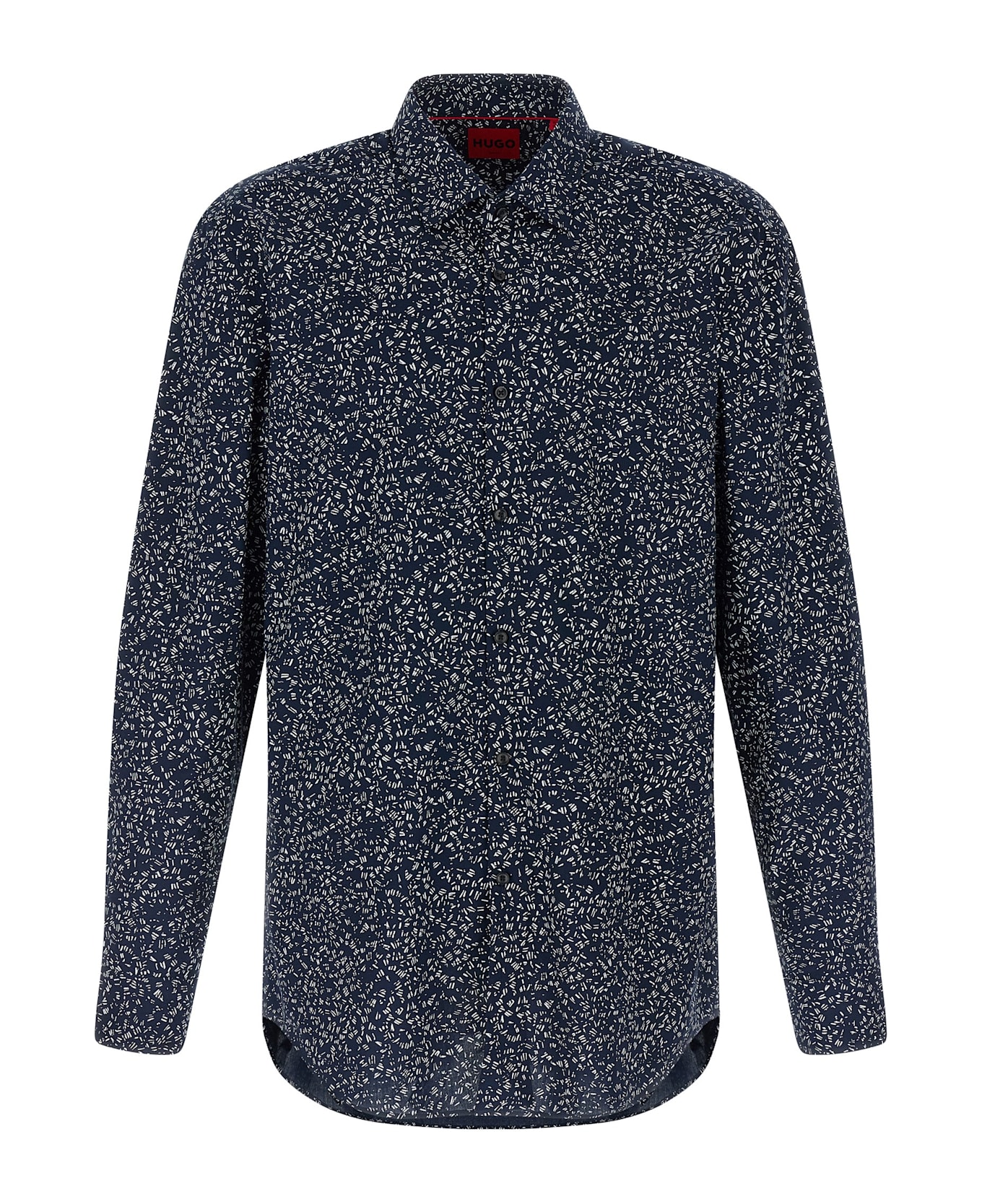 'Kenno' all-over patterned cotton shirt, front button closure, back pin tucks, long cuffed sleeves, rounded hem.