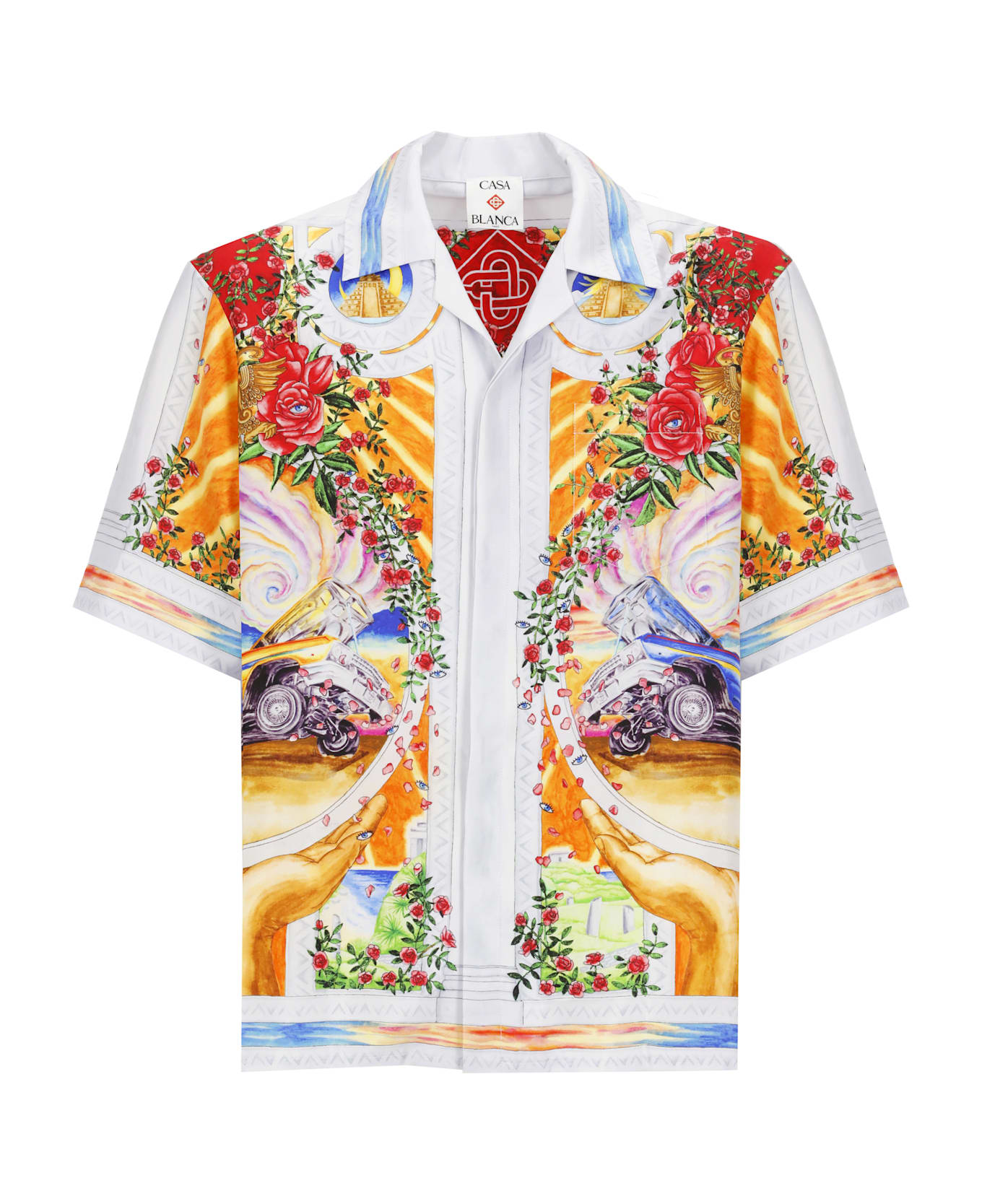 - Multicolor Casablanca silk shirt for man - Collar - Short sleeves - Chest pocket - All-over contrasting color La Tournade De Rose print Composition: 100% Silk