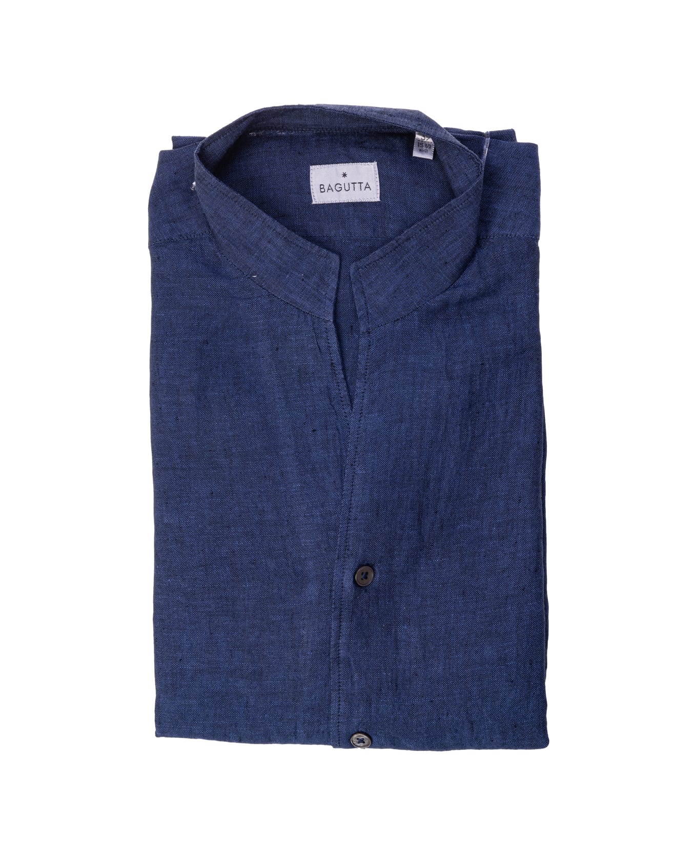 Bagutta linen shirt with Mandarin collar. Standing collar. Slim fit. Composition: 100% linen. Made in Albania.