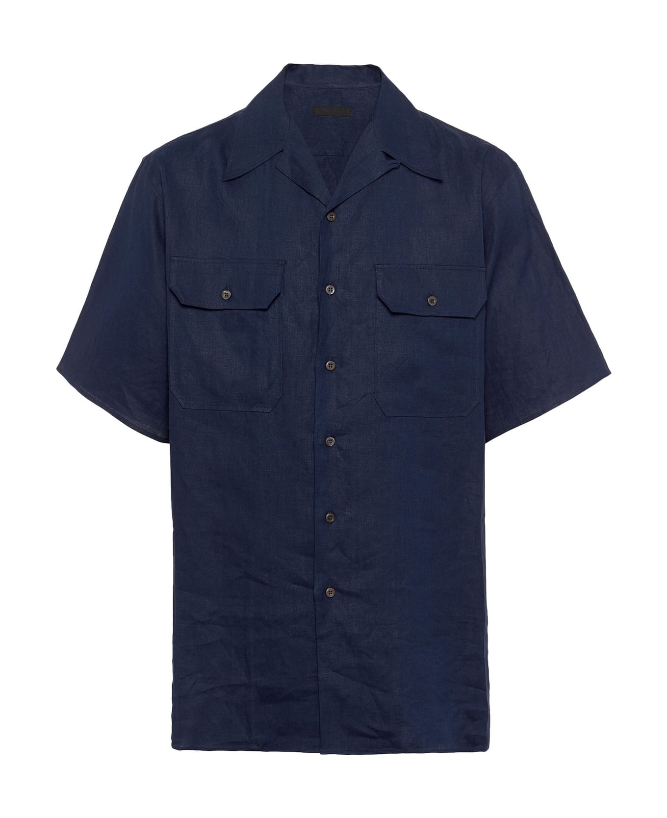 - Composition: 100% Linen - Front button closure - Short sleeve - Straight hem - Machine wash (delicate) - Cuban collar - Two flap pockets on the chest - Back triangle logo detail