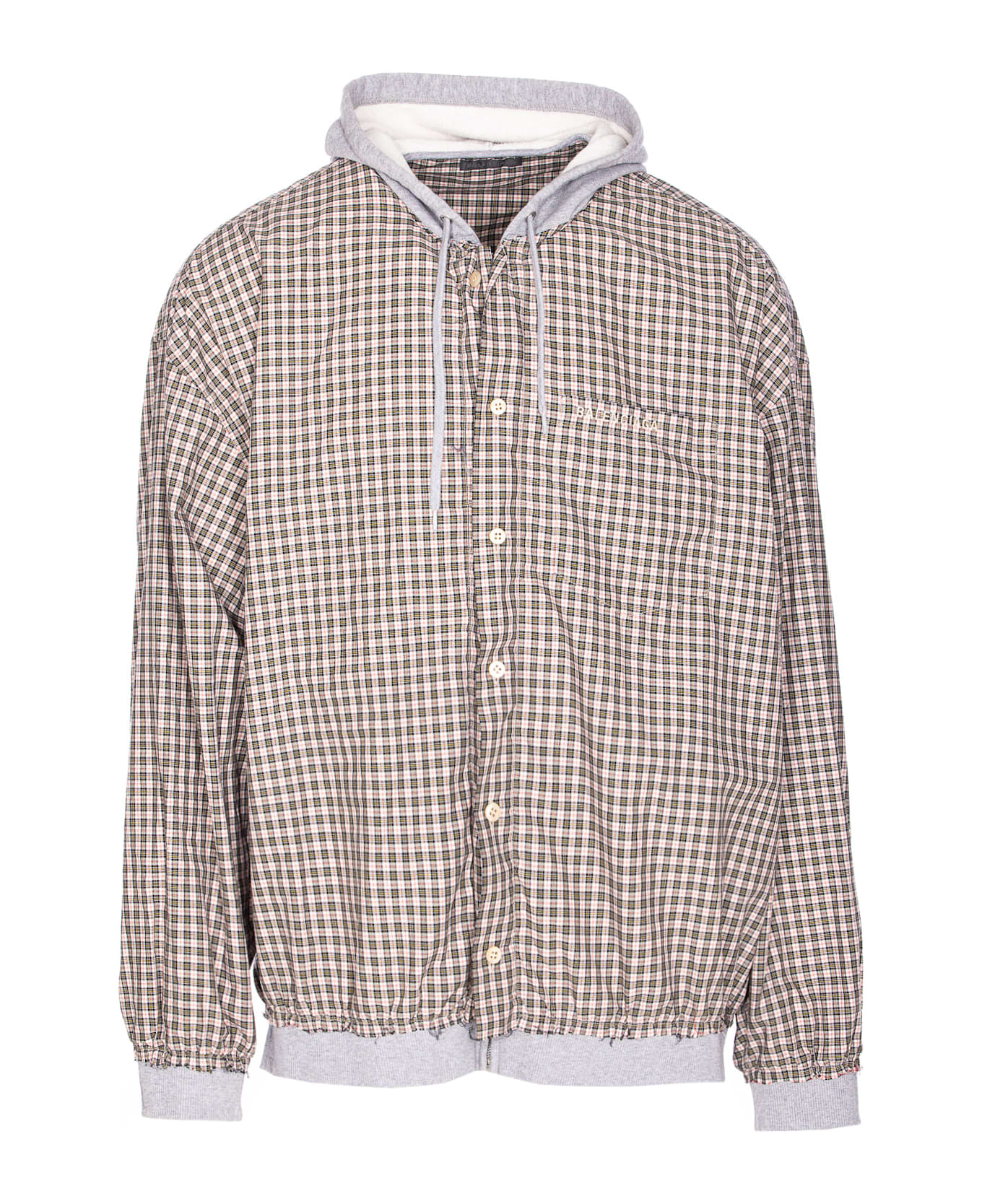 Balenciaga grey shirt with zip closure, hood with coulisse, one pocket on the front, long sleeves, check motif Composition: 100% Cotton