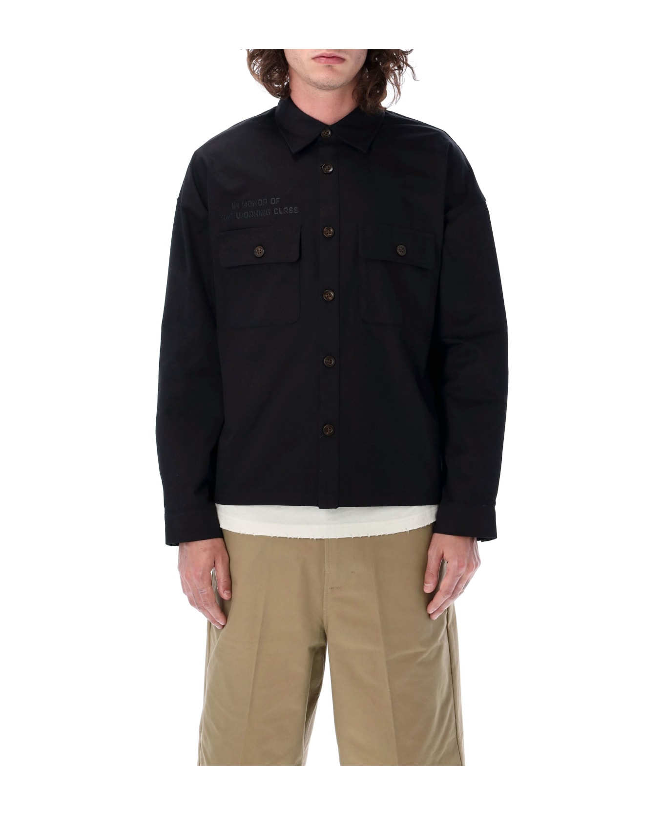 Cotton L/s Working Class Shirt By Honor The Gift. Featuring: Button Up Shirt Point Collar Chest Flap Pockets Tone-on-tone Embroidery At Right Chest Long Sleeves Buttoned Cuffs Straight Hem Model Is 1,90 M Tall And He Is Wearing Size M
