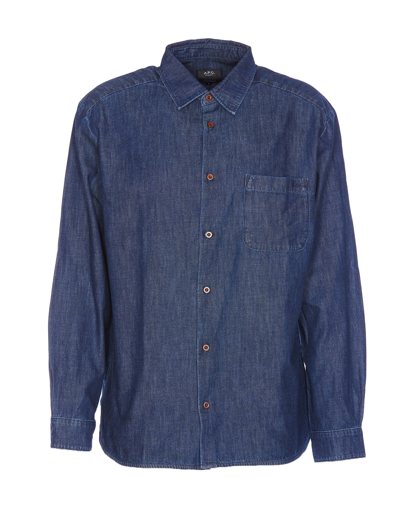 A. P. C. denim Chemise Malo shirt with frontal buttons closure, regular collar, long sleeves, buttons on cuffs