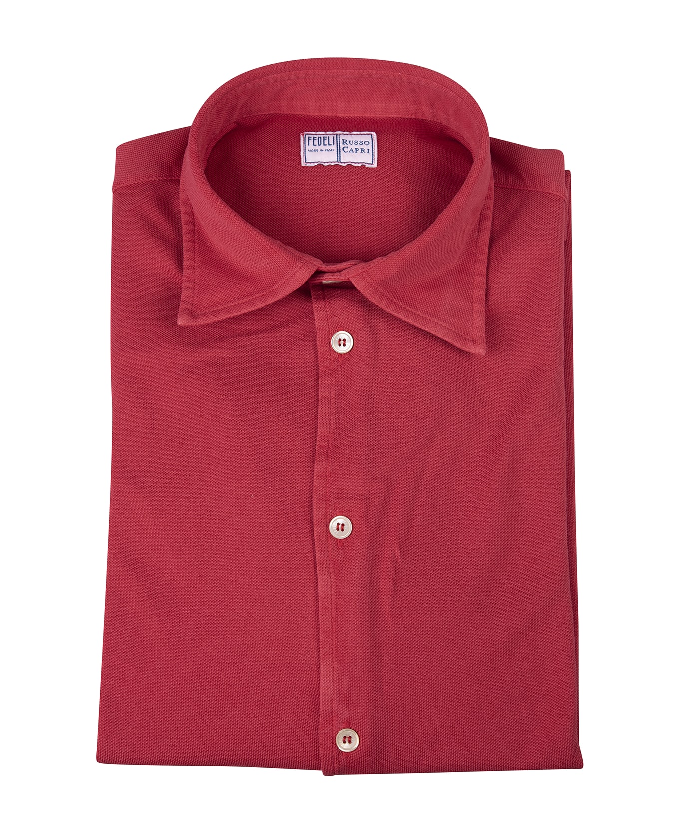 Men's shirt by Fedeli in collaboration with Russo Capri made of red cotton pique' and characterized by Italian collar, long sleeves, cuffs with button, curved bottom and front closure with buttons. Composition: 100% Cotton