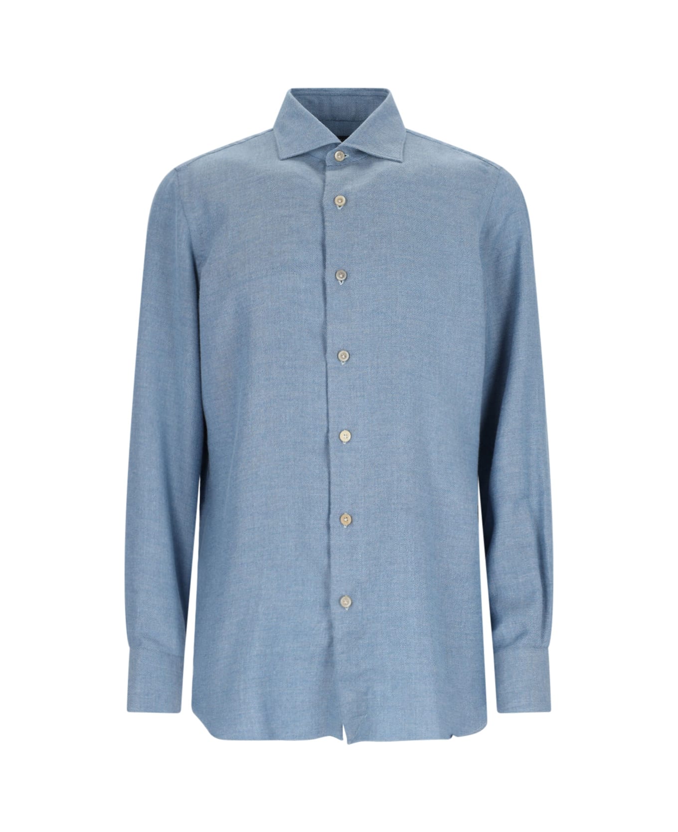 Finamore 1925 Milano shirt in light blue cotton and cashmere with button closure, button cuffs, curved hem.