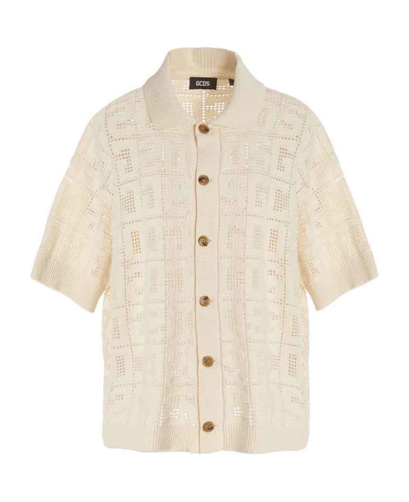 Cotton blend shirt, featuring an all over 'Monogram Macramè' pattern, a button closure, and short sleeves.