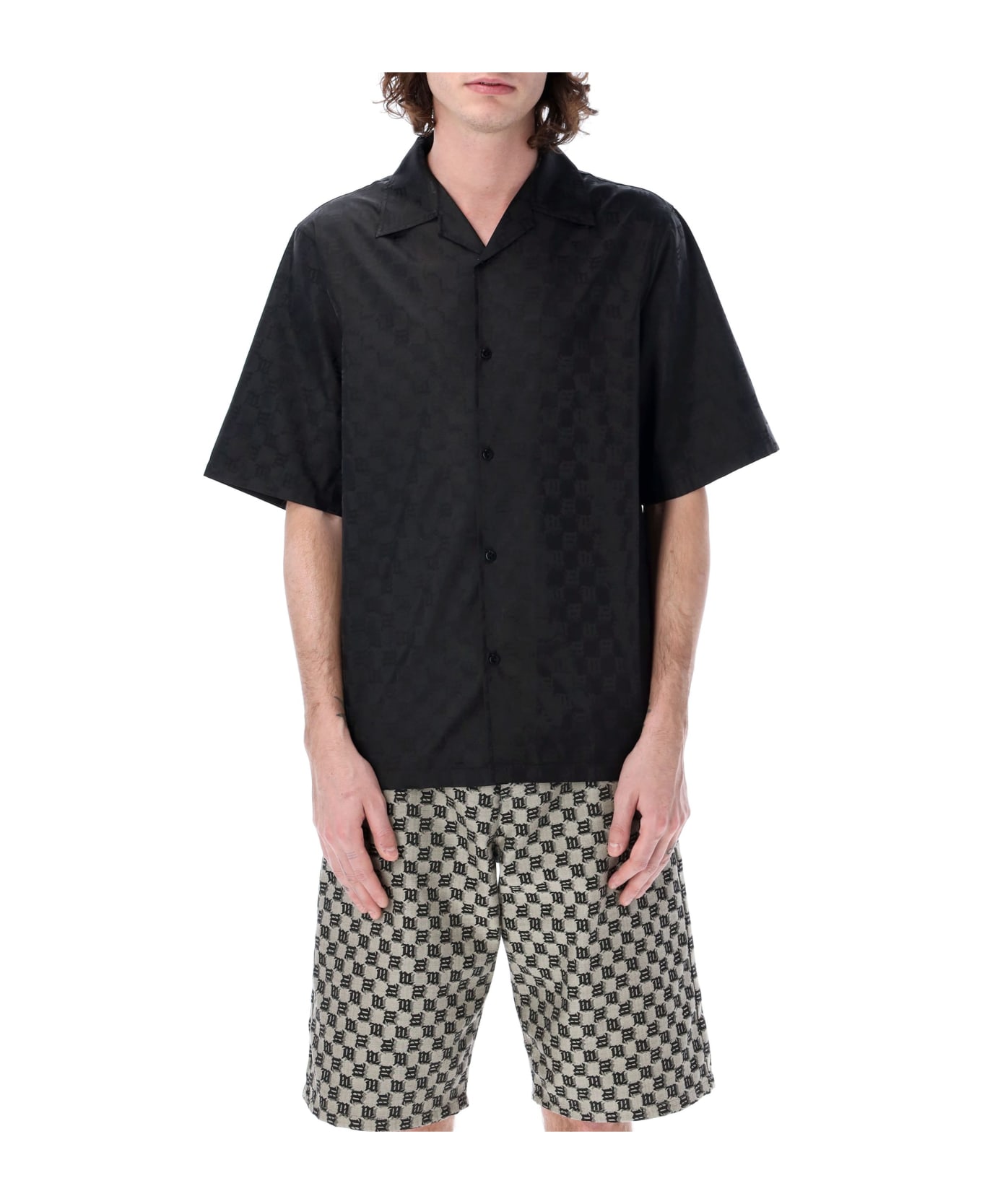 Nylon Monogram Shirt By Misbhv. Featuring: Camp Collar Buttons Closure Short Sleeves Tonal Monogram Motif All-over Straight Hem The Model Is 1,90 M Tall And He's Wearing Size L