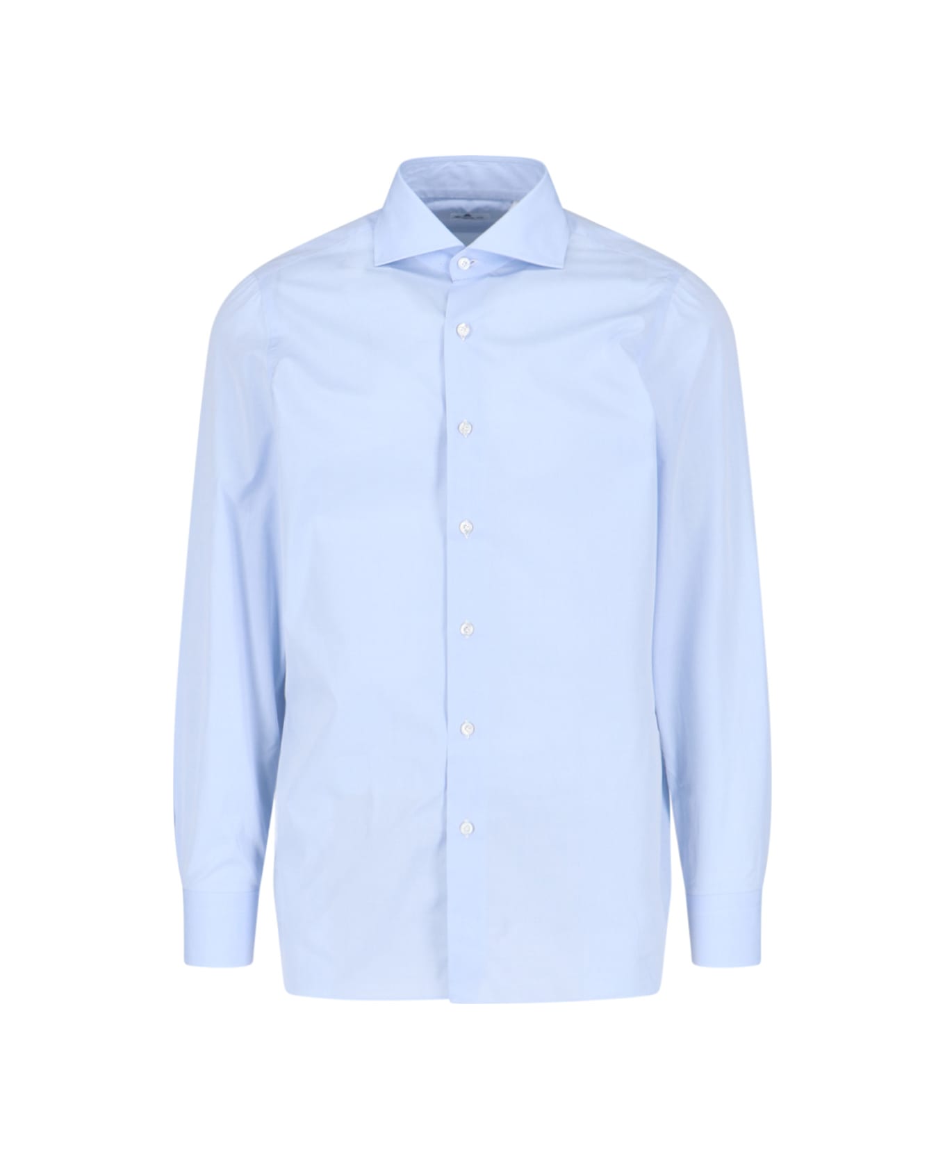Finamore 1925 'Napoli' shirt in light blue Giza 45 Egyptian cotton with classic collar, button closure, button cuffs, curved hem.