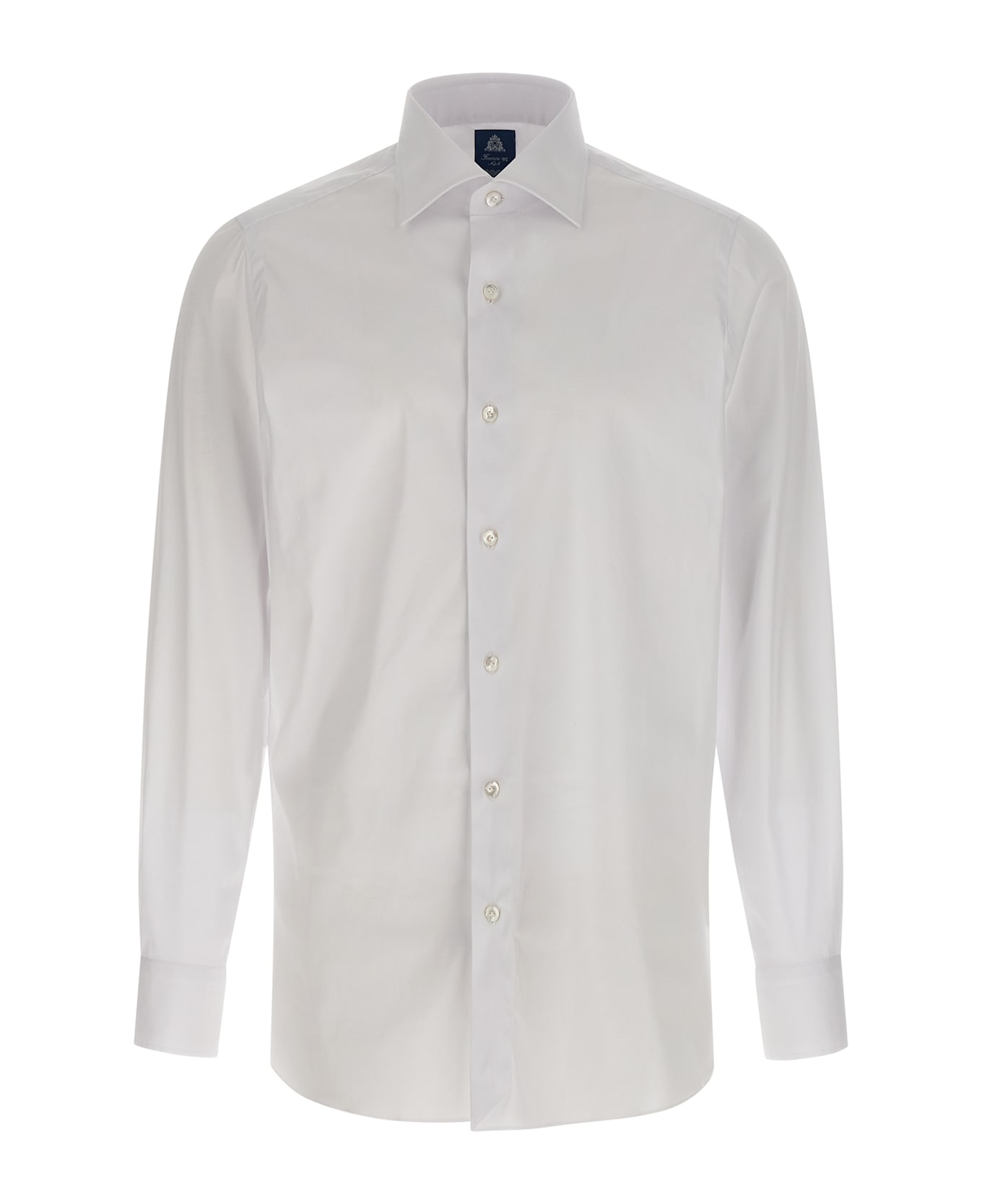 'Napoli' cotton blend shirt with button closure, long cuffed sleeves, contrast satin logo detail on the side slits.