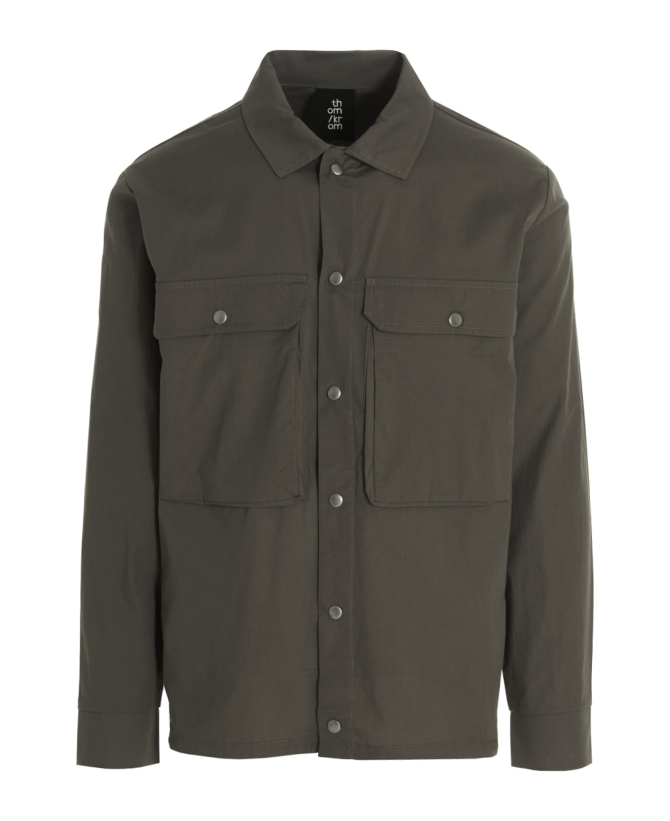 Stretch cotton overshirt with front pockets, button closure, long cuffed sleeves.