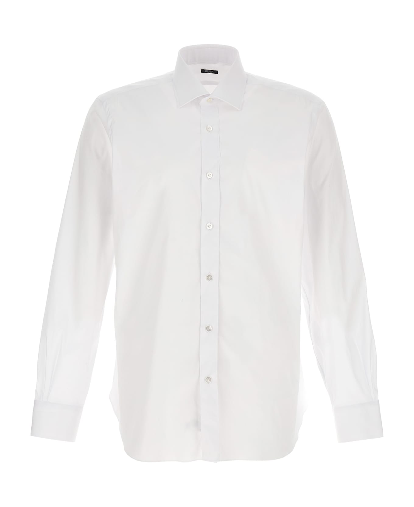 Basic cotton poplin shirt with button closure, and long cuffed sleeves.