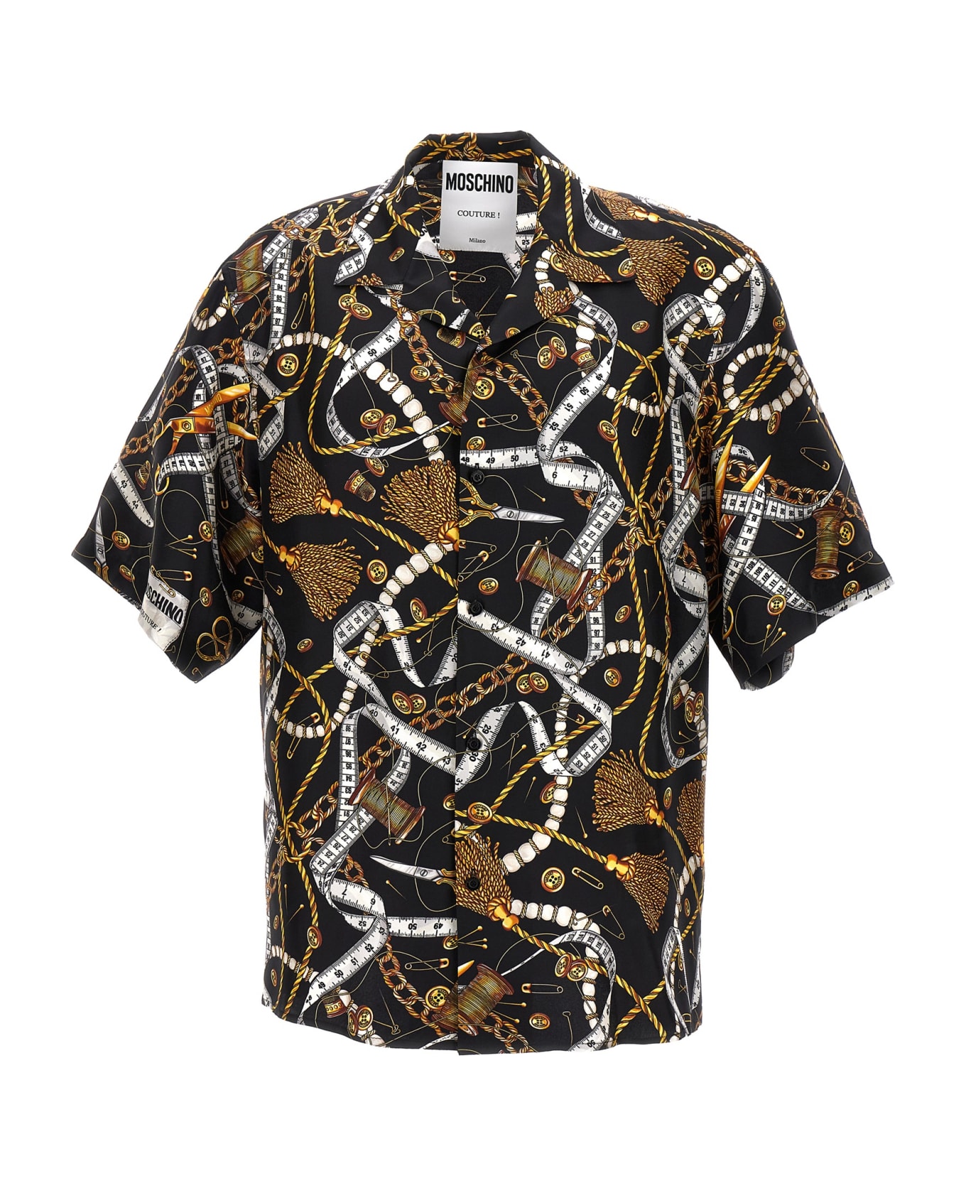 Silk shirt with all-over print, button closure, and short sleeves. Composition: 100% silk