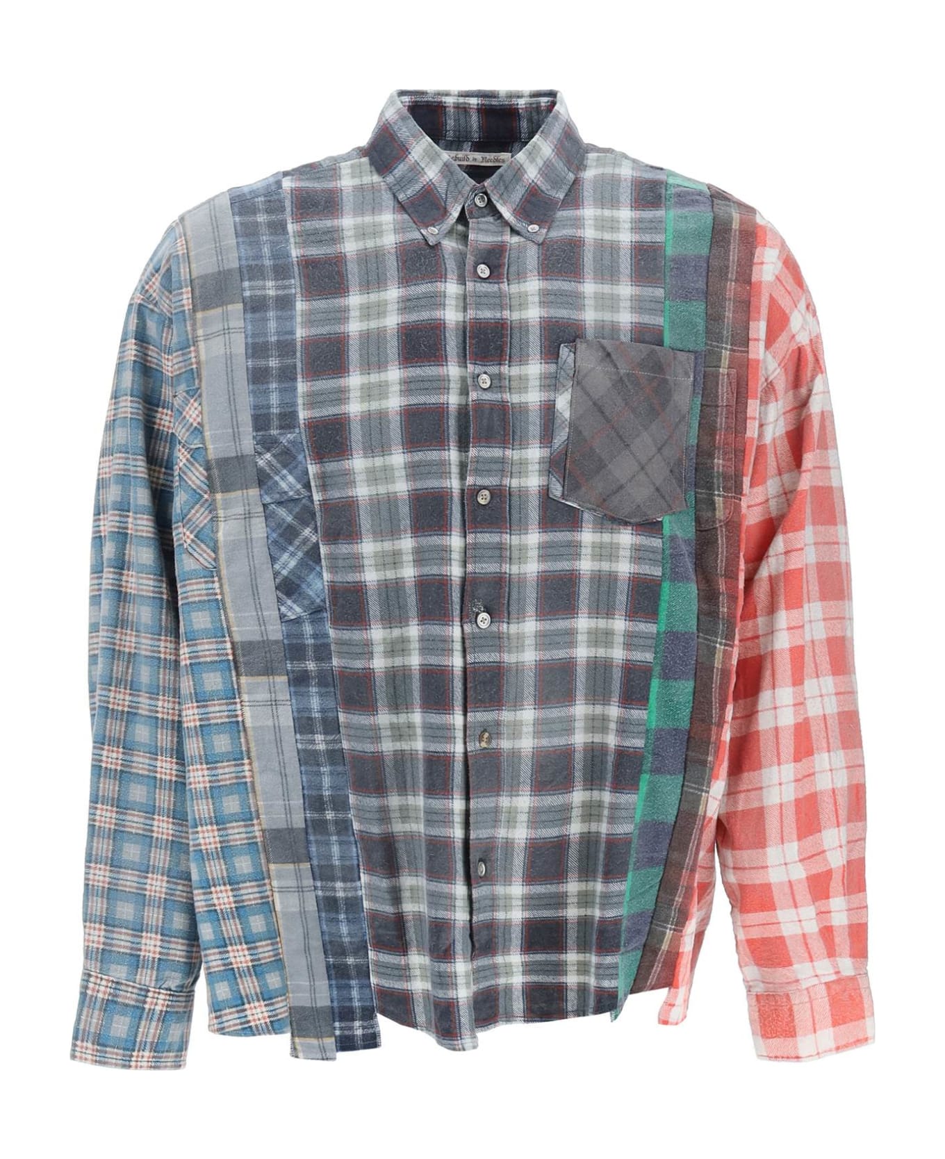 Upcycled patchwork shirt from the Rebuild line by Needles, made from multicolored checked cotton flannel panels. It features a button-down collar, button placket, asymmetric hem and a chest pocket. Boxy fit. Prints and finishes may vary, each item is unique. The model is 187 cm tall.