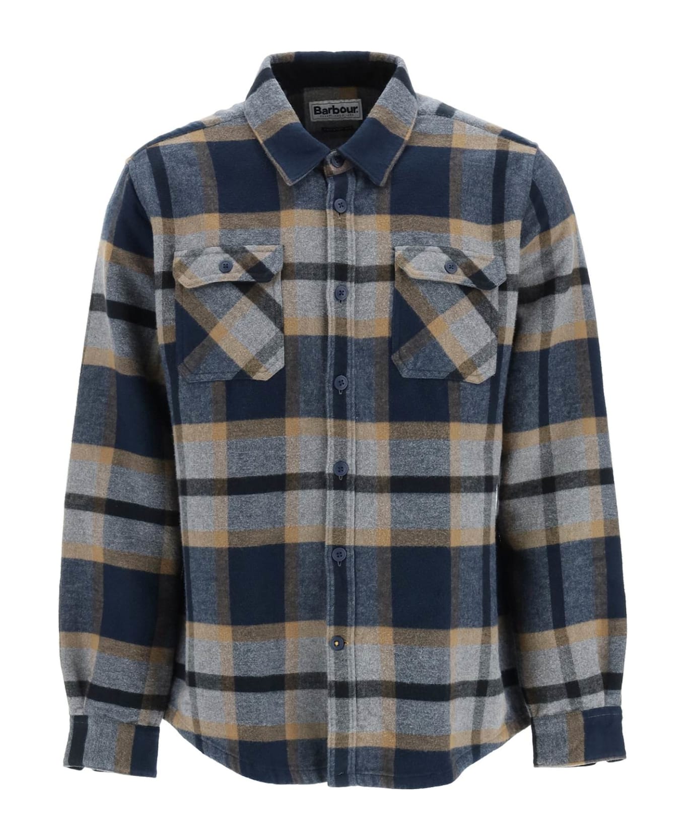 Barbour casual shirt in heavy cotton blend flannel with check pattern, featuring two flap pockets on the chest, button placket, adjustable angled cuffs and curved hem. Regular fit. The model is 187 cm tall and wears a size L.
