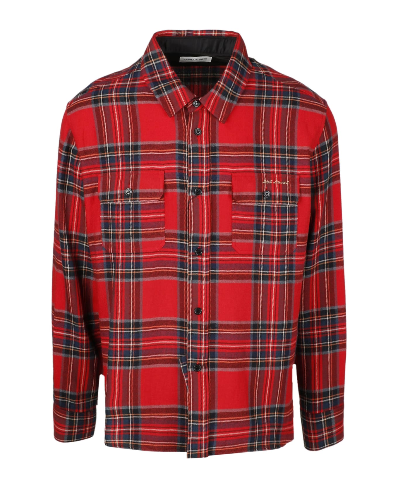 Saint Laurent SAINT flannel shirt with tartan pattern and embroidered Signature logo. Shirt with pointed collar and buttoning on the center front.