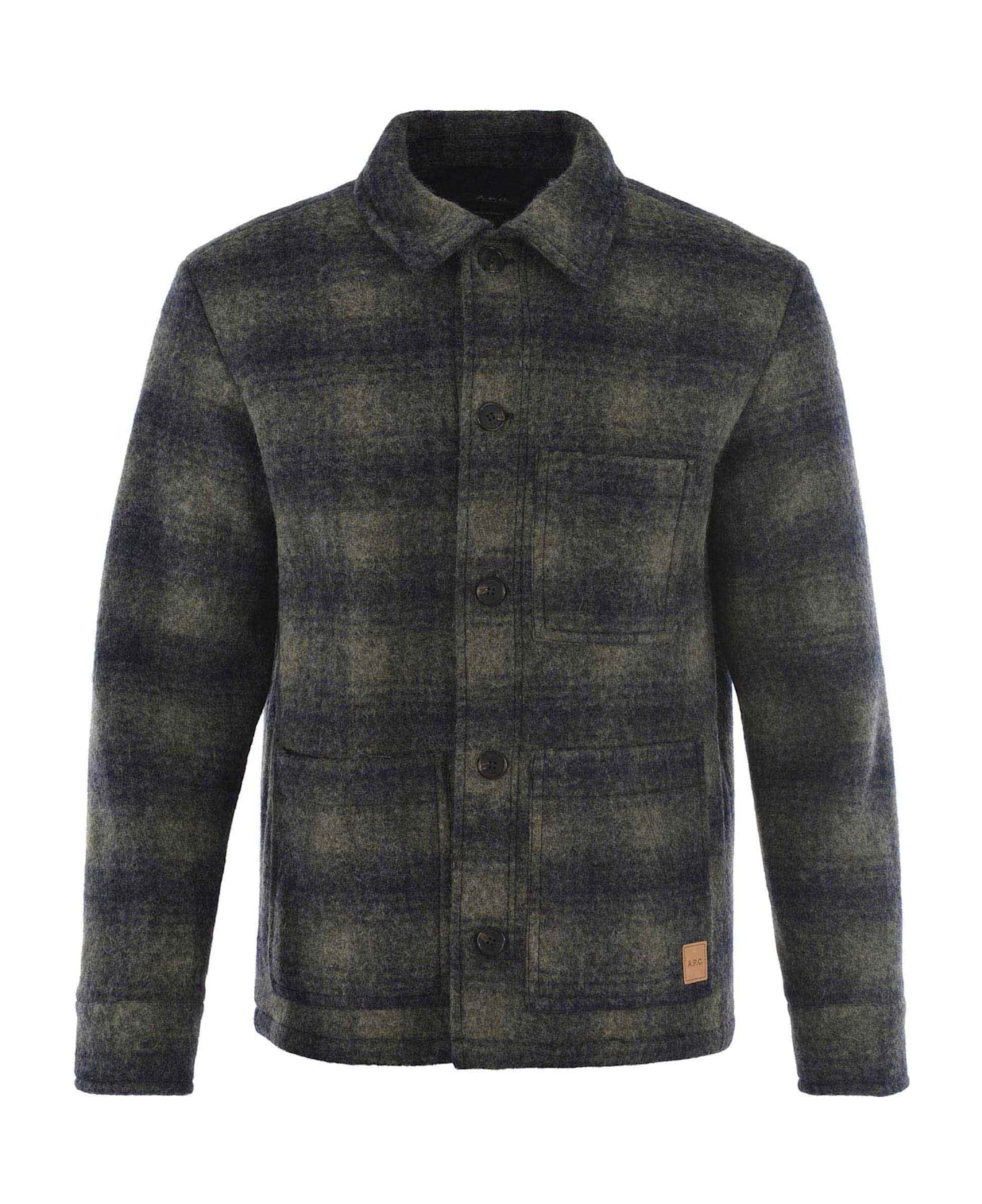 Shirt A. P. C. made of virgin wool in Blue. Contrasting tartan pattern. Classic collar. Long sleeves. Buttoned cuffs. Patch pocket on the chest. Button closure, front. Patch pockets on the side. Logo patch on the pocket. 70% Virgin Wool, 30% Polyester