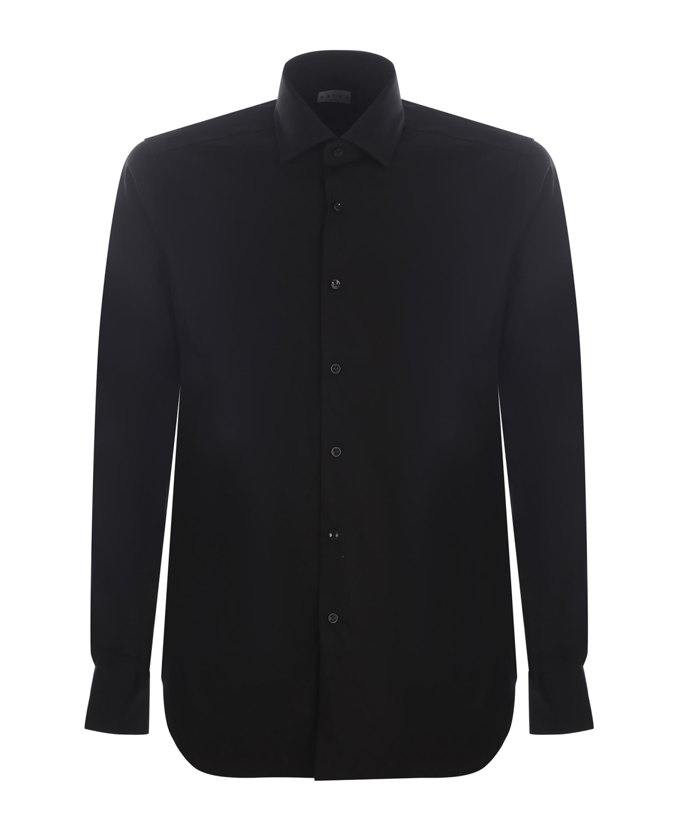 Xacus shirt made of Black cotton poplin. Spread collar. Long sleeves. Cuffs with buttons. Button closure on the front. Slim fit. 78% Cotton, 18% Polyamide, 4% Elastane