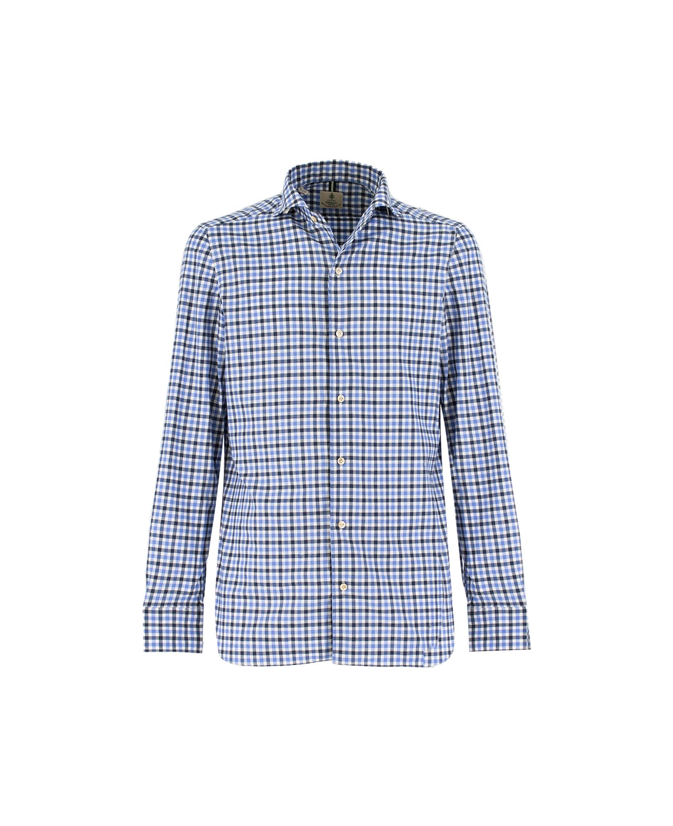 Luigi Borrelli's shirts are traditionally made with the utmost care in Naples, during production there are nine handmade steps that represent the moment when the human hand replaces the machine. Thus the armhole, collar, yoke, mouche, joist, buttonhole, labels, the button with the typical chicken foot stitch and the buttoning with mother of pearl buttons, regular fit.