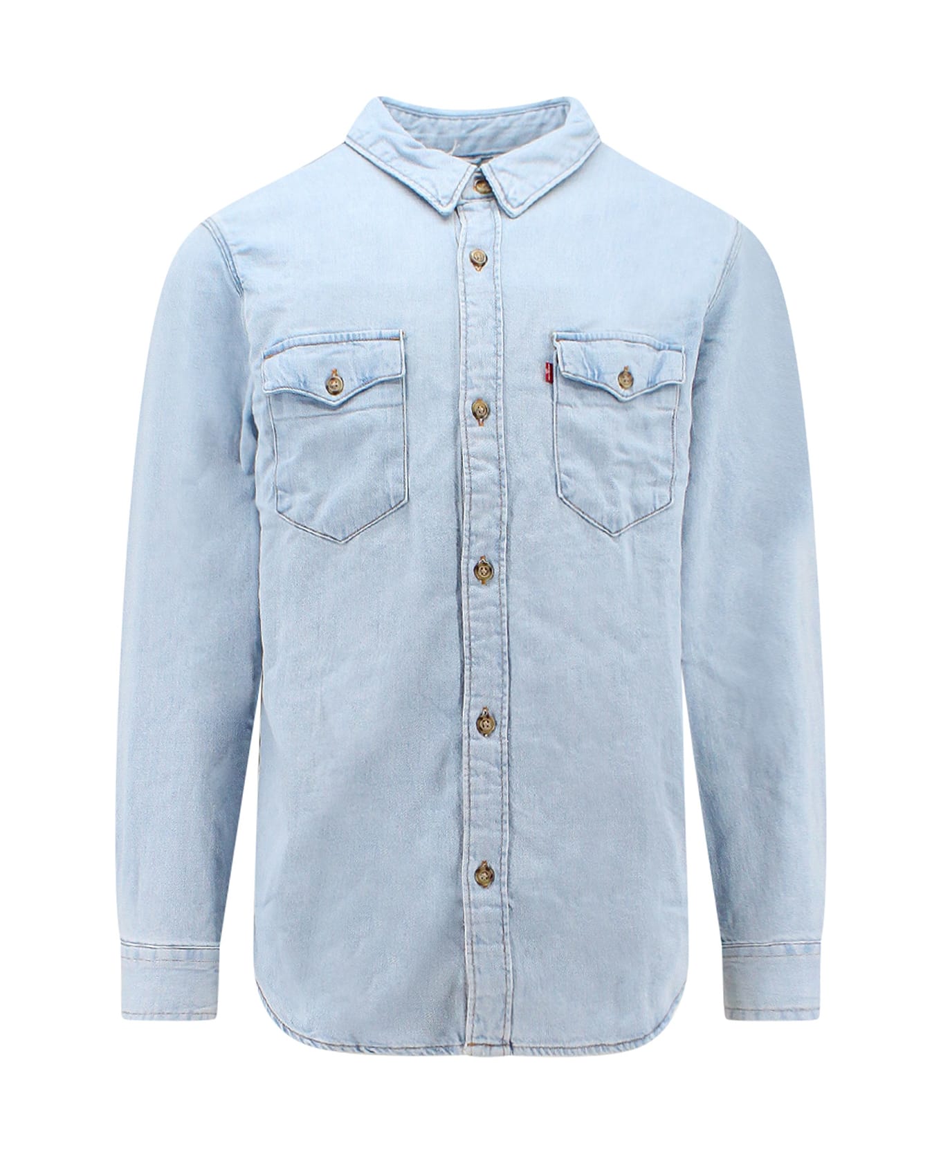 Denim shirt with logoed label