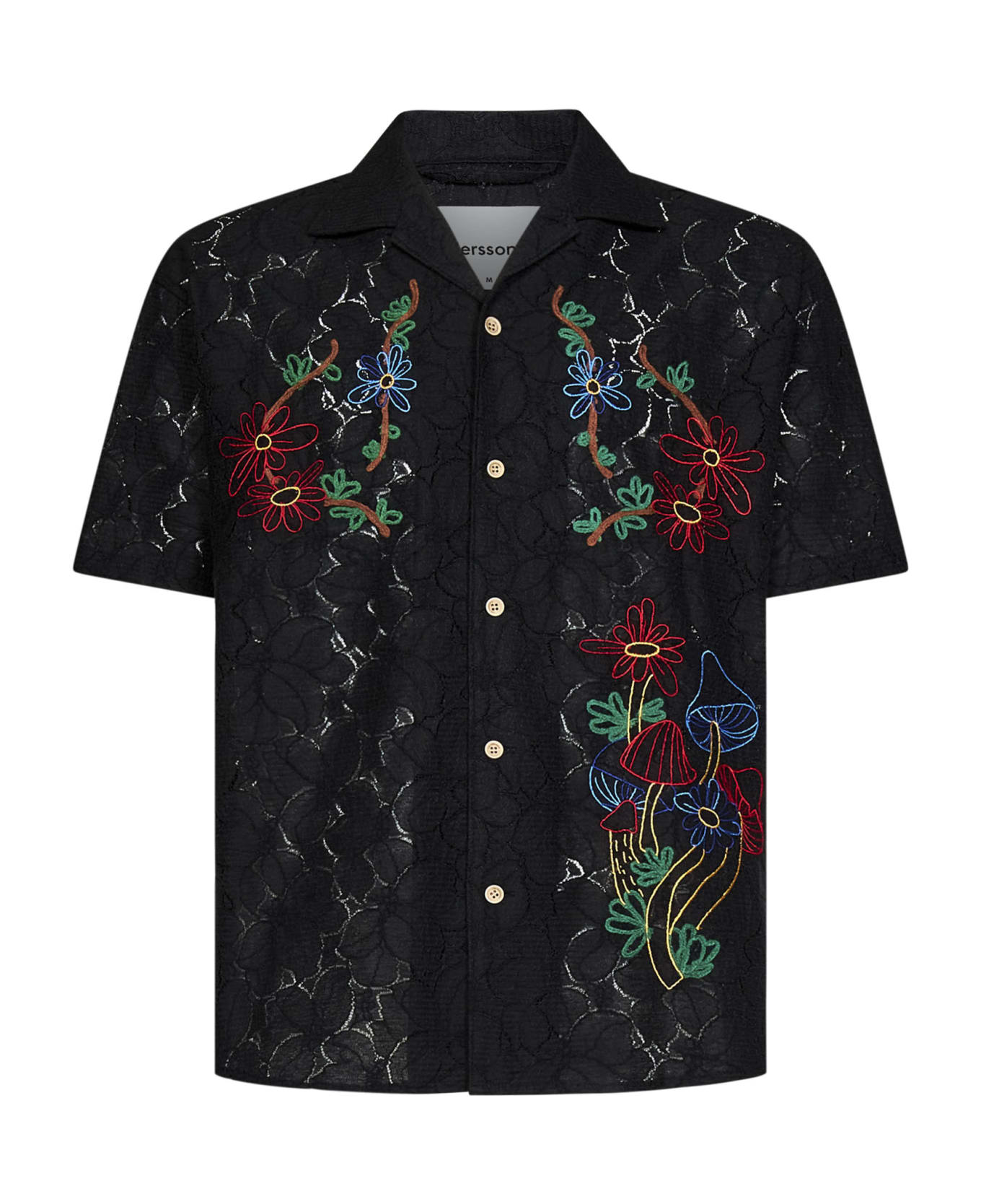 • Embroidered multicolored flowers and mushrooms on the front and back