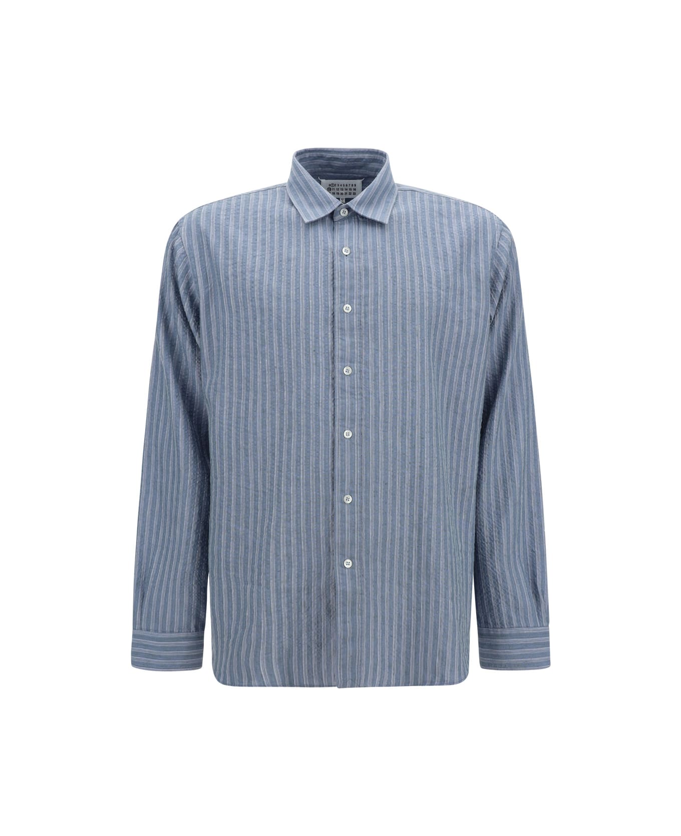 Linen shirt by maison margiela, classic collar, front button closure, striped pattern, regular fit. Composition: 68% % Linen, 32% % Polyester