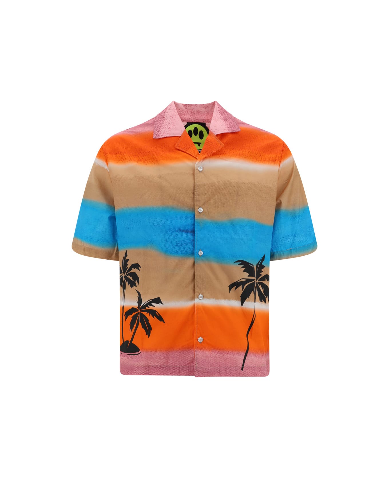 Cotton shirt by barrow, classic collar, a front button fastening, a multi-coloured pattern, the brand's iconic all-over printed palm trees, an embroidered patch with the brand's iconic monogram on the side panel, a short sleeve design, and a regular fit.