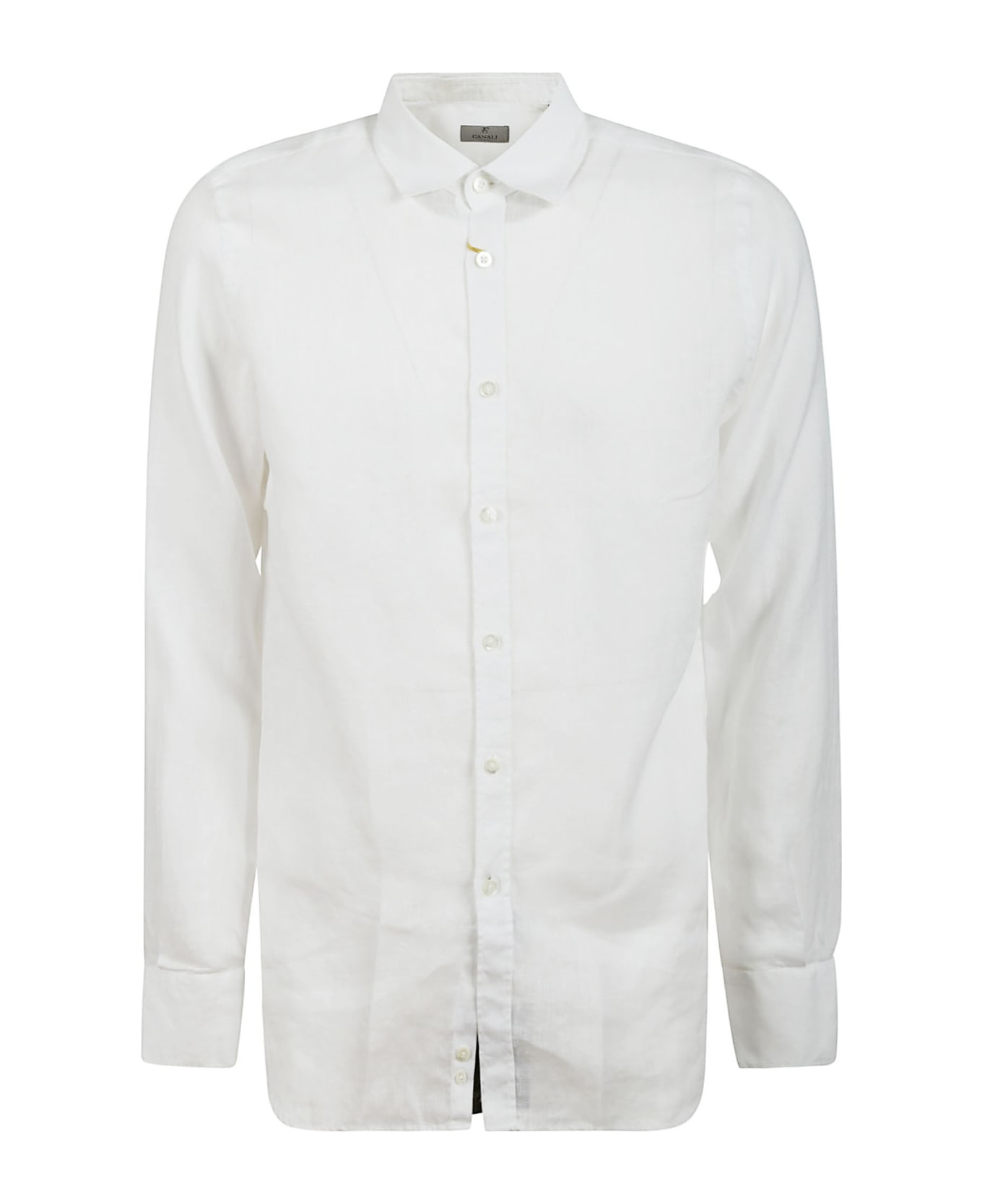 Canali White linen shirt, button closure, button cuffs, slim fit. Composition: 100% Li