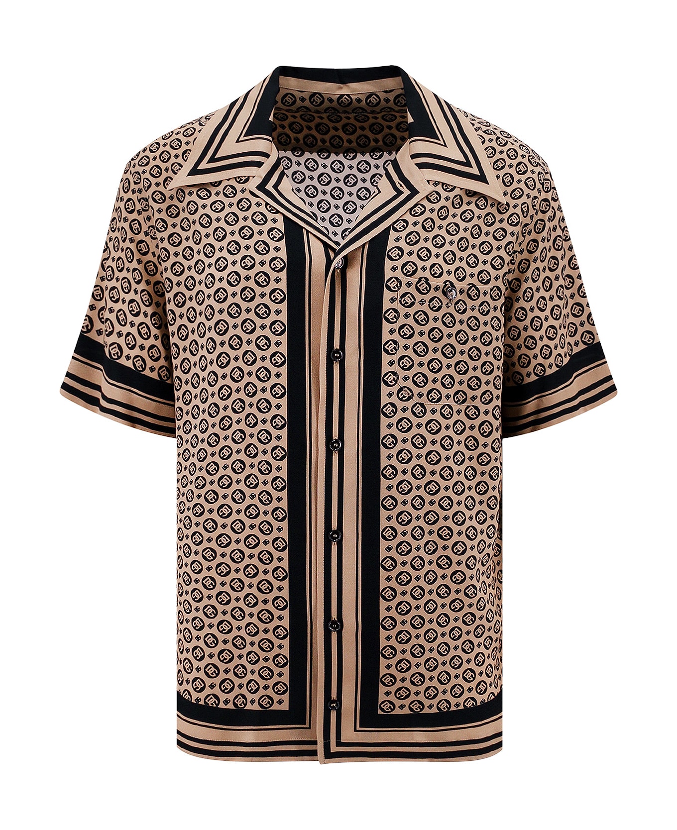 - Closure With Buttons - Bowling Collar - Short Sleeves - Made In Italy - 100% Silk