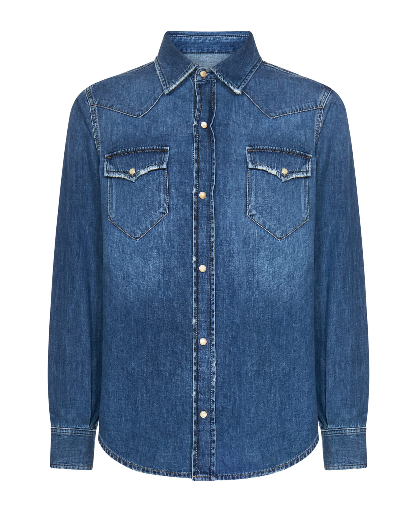 Pointed collar; Long sleeves, two-button cuffs, snap buttons