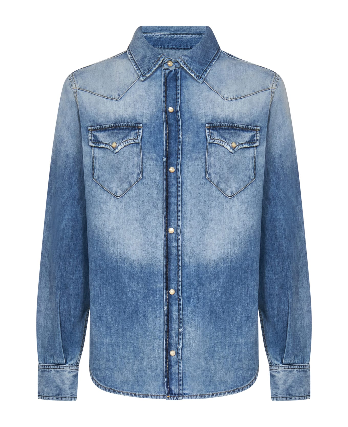 Pointed collar; Long sleeves, two-button cuffs, snap buttons