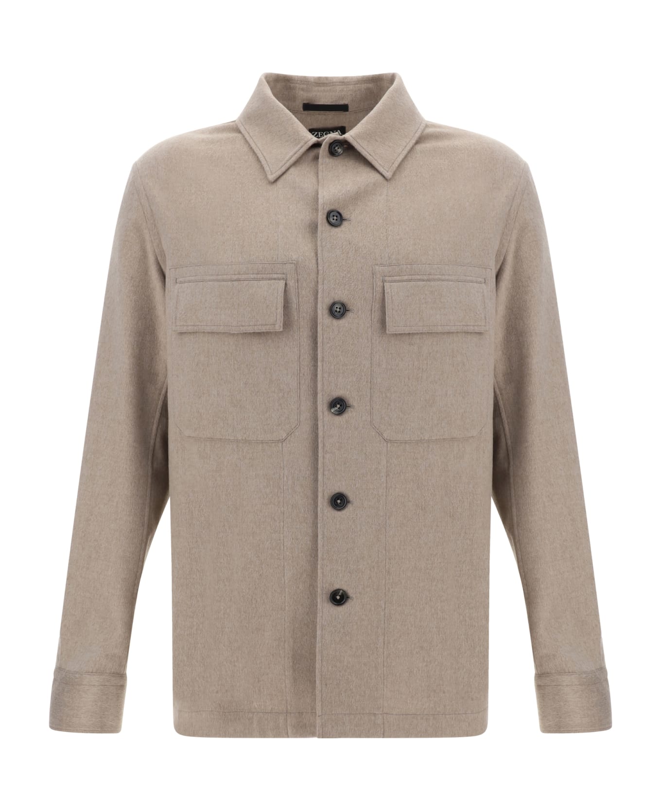 Shirt by zegna, classic collar, front button closure, two patch pockets on front with flap for closure, adjustable button cuffs, monochrome pattern, regular fit. Composition: 100% Kashmir/capra Hircus