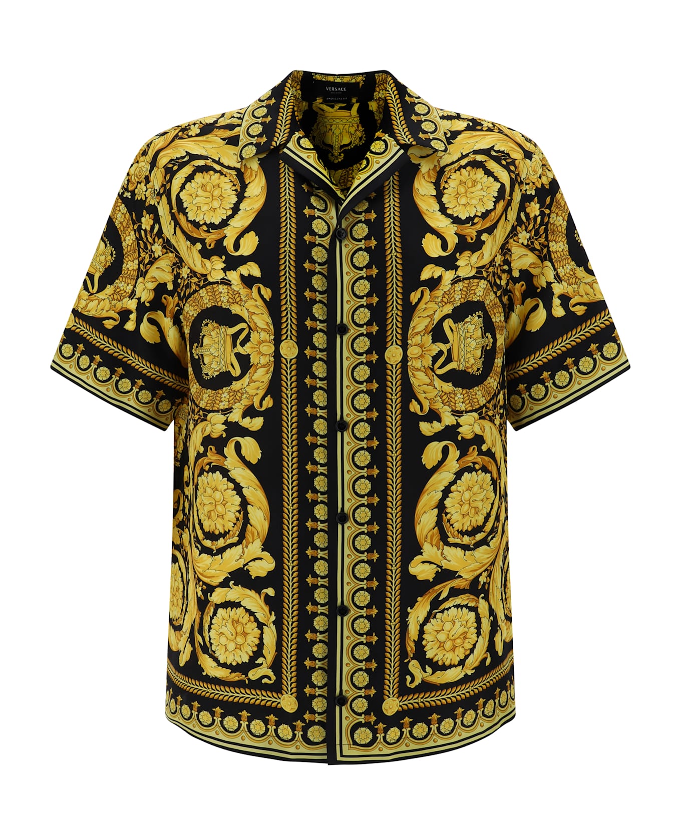 Silk shirt by versace, featuring classic collar, front button closure, short-sleeved design, iconic all-over barocco print, regular fit. Composition: 100% % Silk