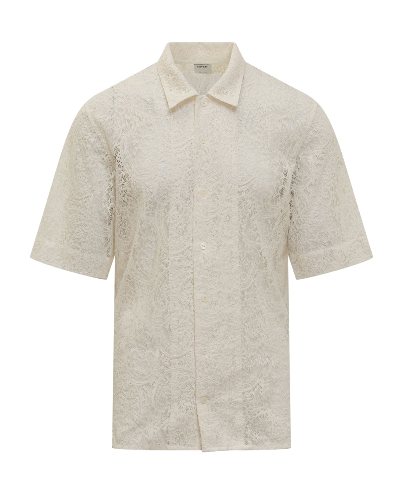 Short sleeve shirt. Classic collar. Buttons closure. All over embroidered pattern.