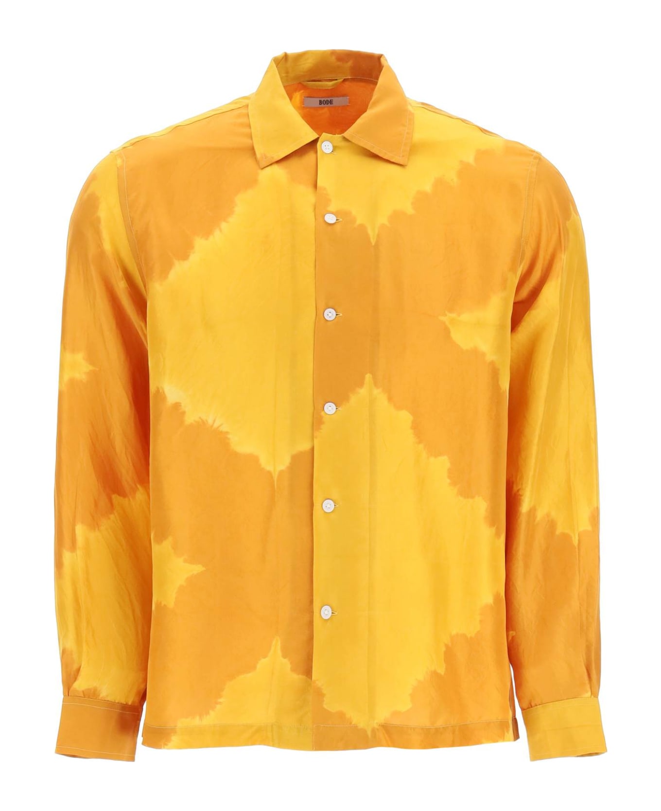 Bode relaxed-fit shirt crafted in lightweight silk crepe, dyed in Lehariya style: a special traditional Rajasthani wave-like tie-dye technique.   It features a spread collar, button french front and single-button cuffs. Straight hem. Finished with rear side logo embroidery. The model is 187 cm tall and wears a size M/L.