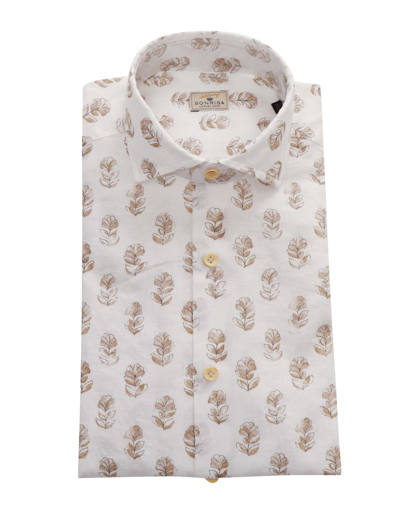 Linen and cotton shirt, all-over beige nature print